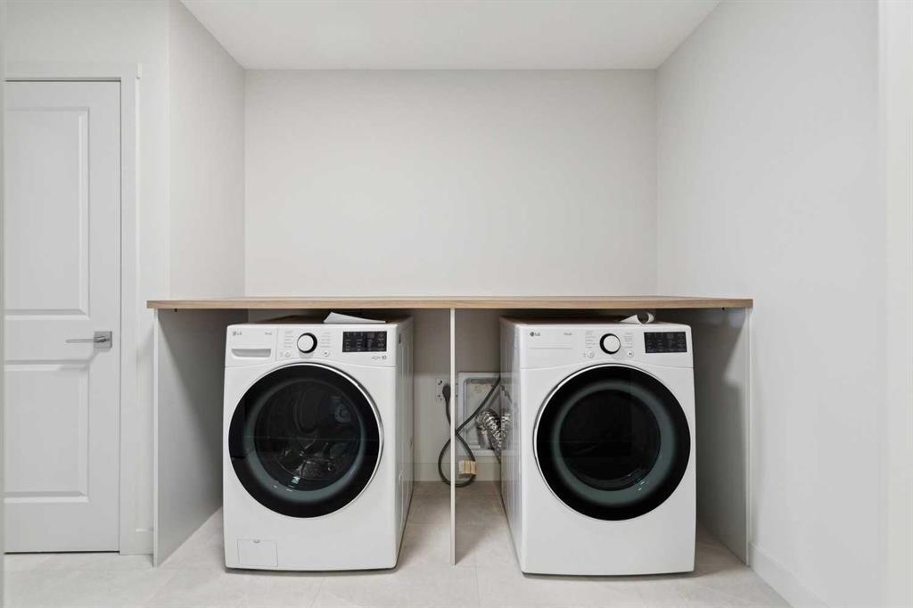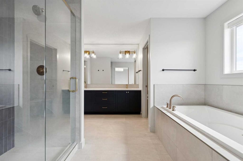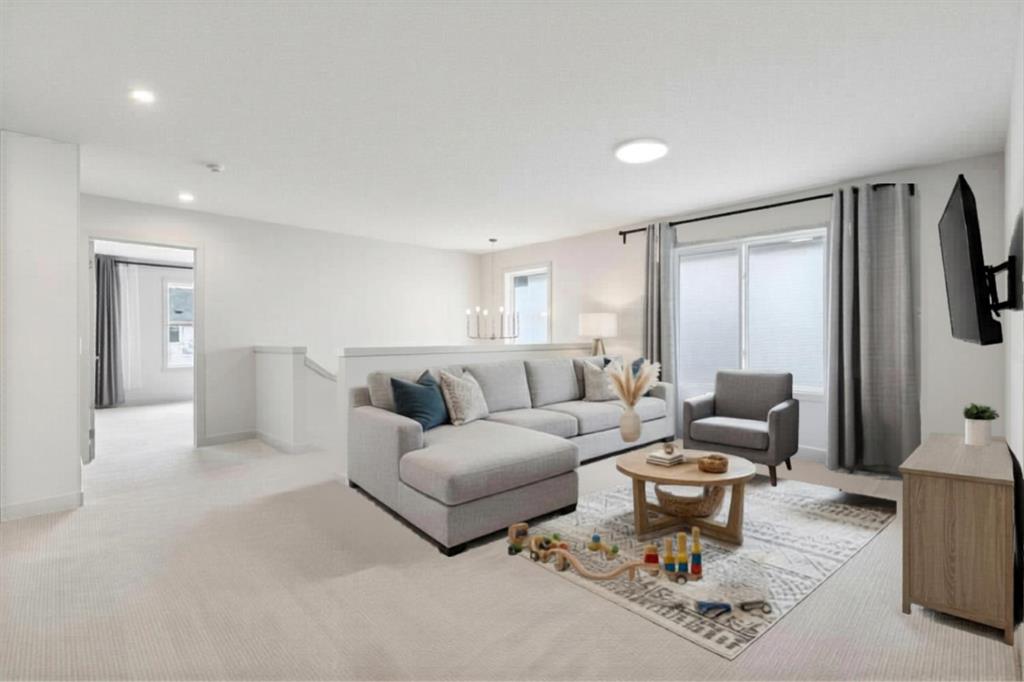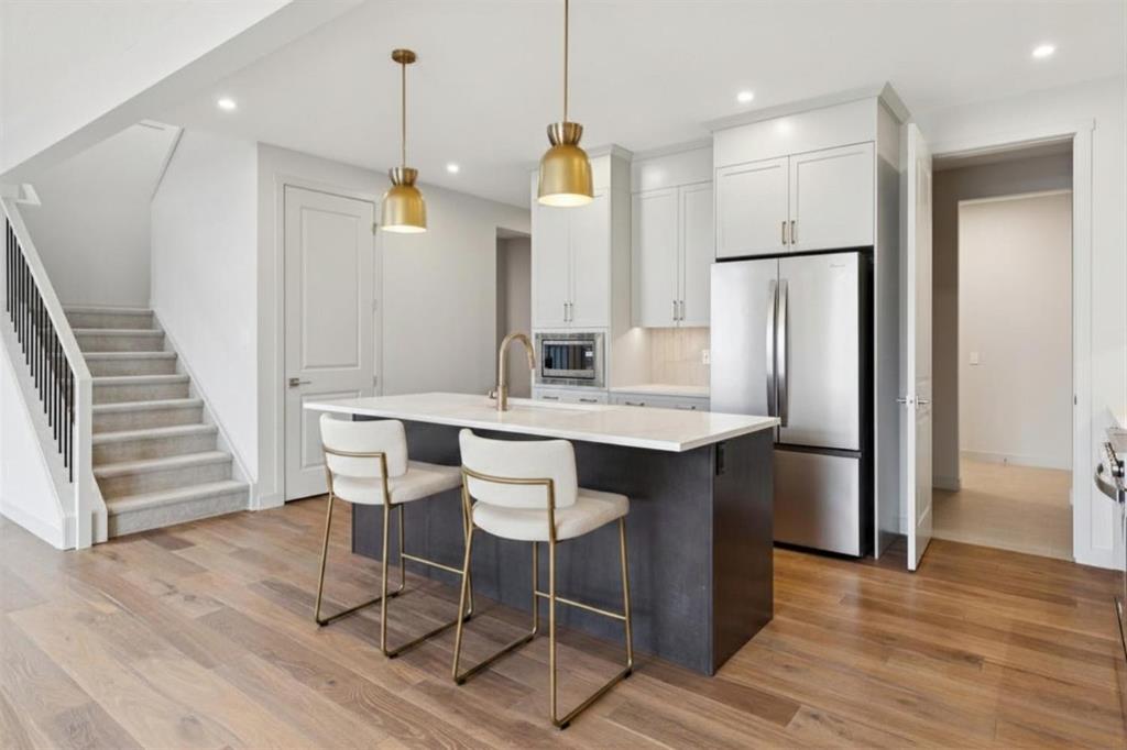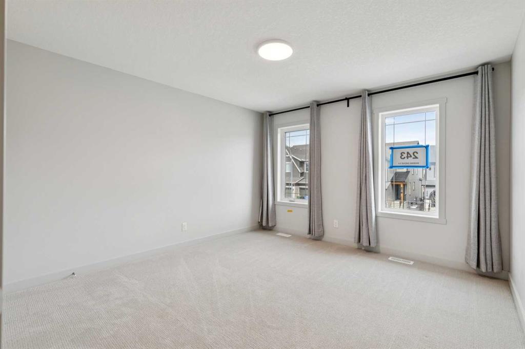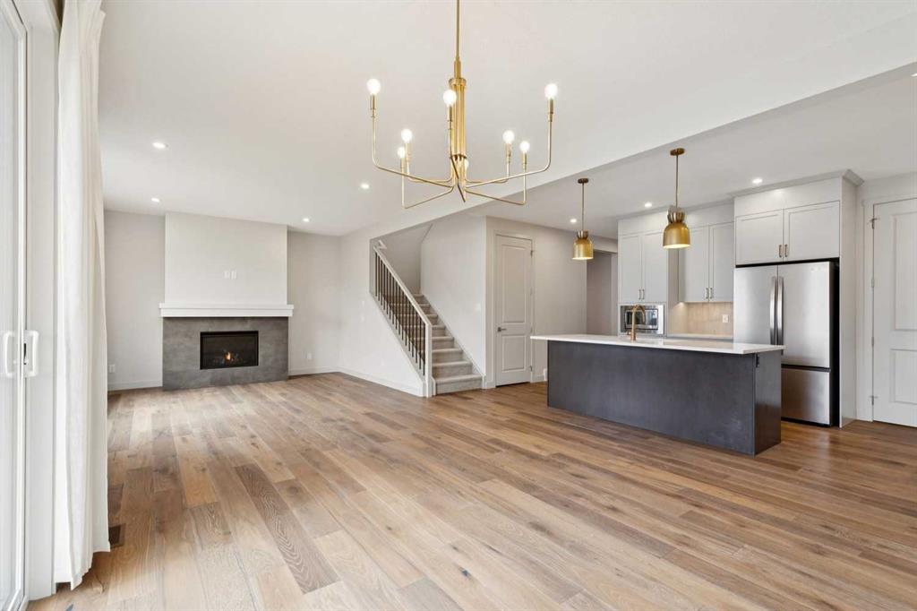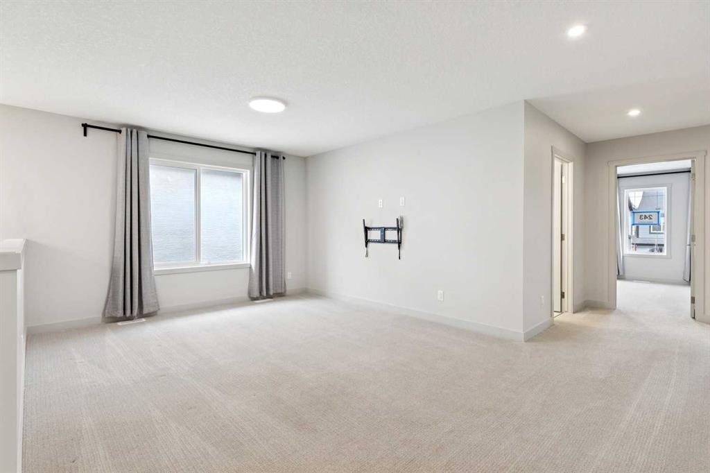 4 BEDROOMS & BONUS ROOM UP | Set within an exclusive, quiet estate pocket of Mahogany, this exceptional, virtually brand-new Baywest-built Rosebud model offers refined lake living with rare SEMI-PRIVATE DOCK ACCESS and over 2,700 sqft of thoughtfully designed space. From the moment you enter, the home impresses with soaring 9' ceilings, 8’ interior doors, engineered hardwood flooring, and a light-filled layout that balances everyday function with elevated style. The main level is anchored by a stunning chef’s kitchen featuring a statement island, stainless steel appliances including gas stove, full-height cabinetry with crown moulding, under-cabinet lighting, soft-close features, and smart storage including pullouts, all flowing effortlessly into an inviting dining area and expansive great room with a gas fireplace. Tucked discreetly at the rear, a walk-through pantry connects to a practical mudroom, while a dedicated main floor office provides a quiet, flexible workspace. Upstairs, a central bonus room creates separation and privacy, leading to a serene primary retreat complete with custom blinds, a spa-inspired ensuite with custom barn door, dual sinks, quartz counters, glass shower with accent wall, large soaker tub and an oversized walk-in closet with built-ins, along with 3 additional bedrooms, a full bathroom with dual sinks and tub/shower combo, and a conveniently located laundry room accessed from the primary bedroom closet as well as the hallway. The exterior showcases a timeless combination of Hardie Board and brick, while the heated TRIPLE ATTACHED GARAGE (painted walls and floor) and paved rear laneway add both prestige and practicality. An unfinished basement with 9' ceilings and 2 windows presents an opportunity to customize to your needs. The south-facing, fully fenced backyard features a gas BBQ hook-up on the deck and gate access to the laneway behind the house. Custom window coverings, back fence, back raised & covered deck (8' x 13'), and back aggregate concrete patio are all additional features that you will not find from a builder, yet the one-year bumper-to-bumper new home warranty is valid until September 2026! Located in one of Calgary’s most desirable lake communities, residents enjoy access to Mahogany’s PRIVATE BEACH, extensive pathways, non-motorized marina, tennis courts, basketball court, skating rink, fitness facilities, and vibrant urban village amenities, offering a truly elevated, 4-season lifestyle. Buyers will receive a $1500 credit for back and front landscaping, but a tree is already in place in the front yard. Location perks: Calgary Catholic School District is planning a K–9 school in the area, about a 500 m walk east from this property. Mercado Village is a planned shopping and dining complex about a 500 m walk south of the property. Back gate to be finished ASAP.