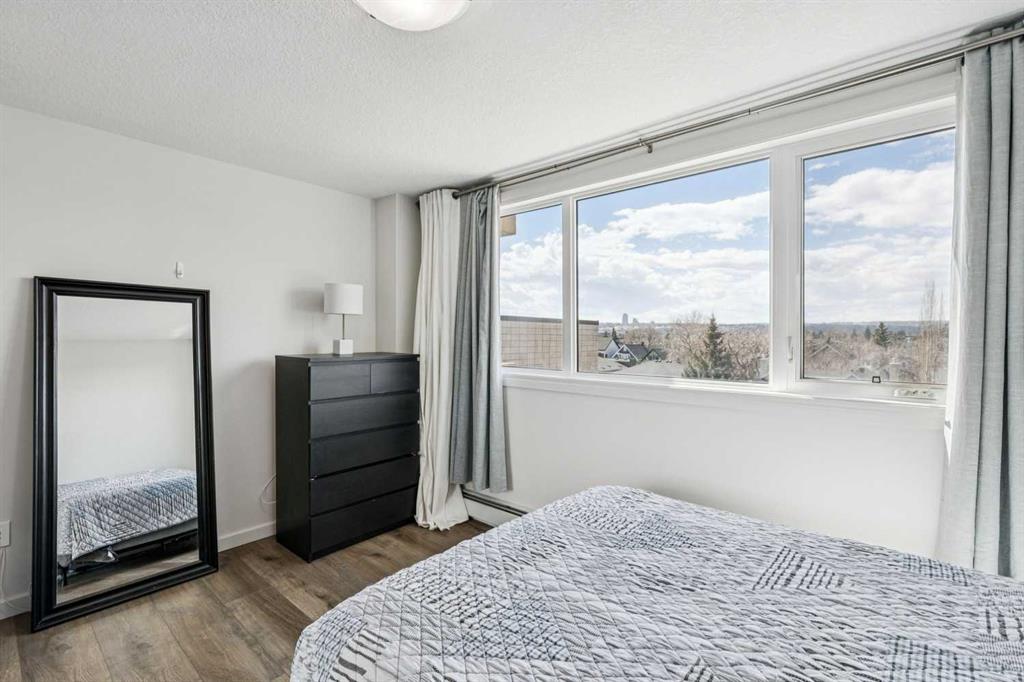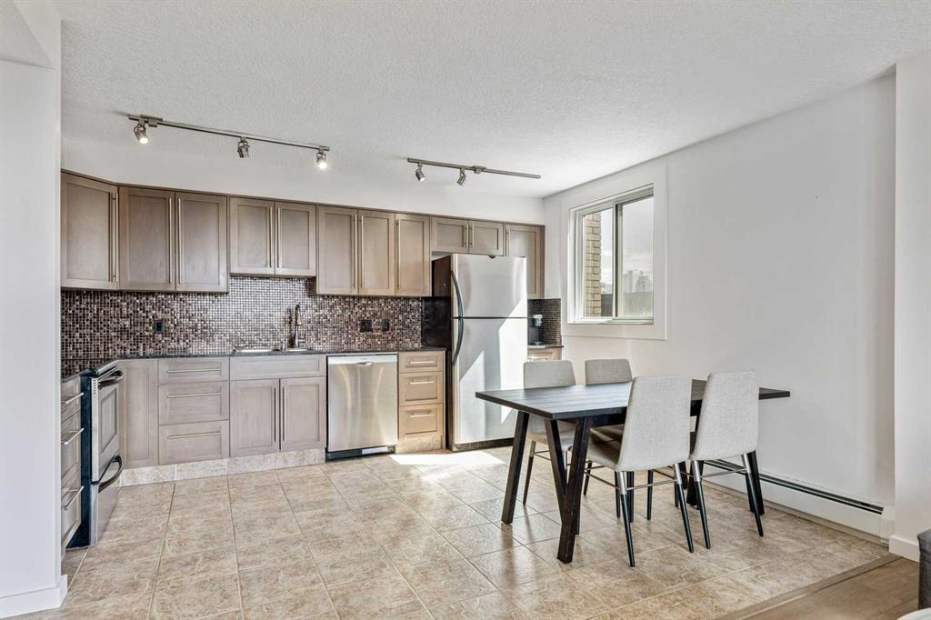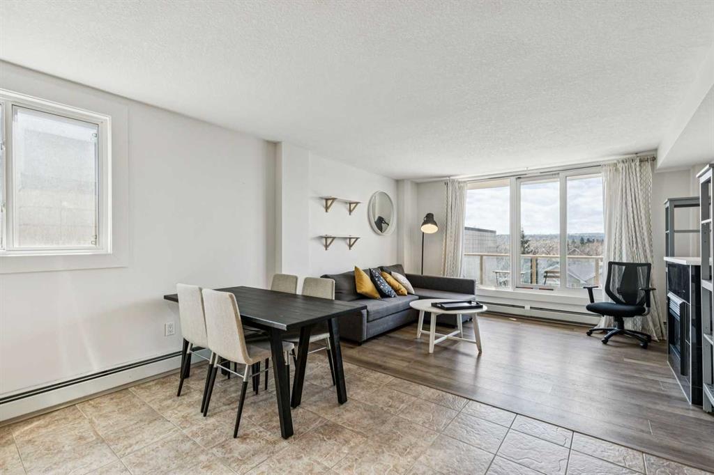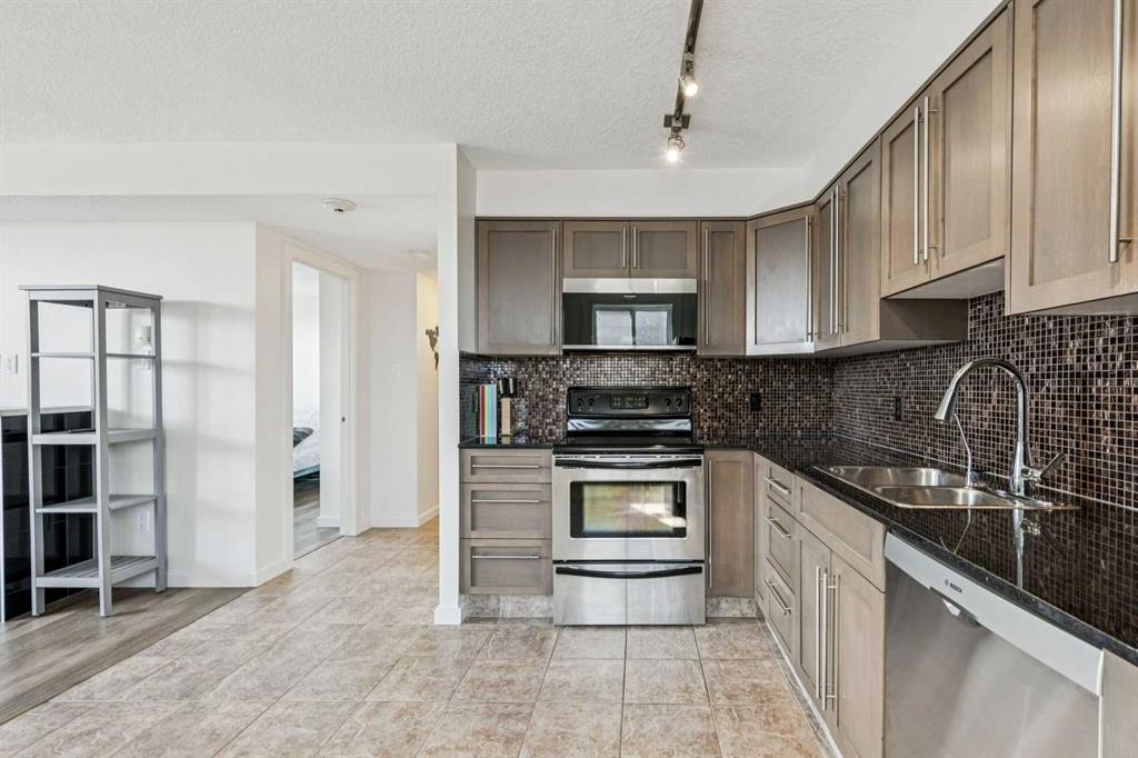 Meet “Haven” — a beautifully updated fifth-floor condo in The Vue in Hillhurst. This SW corner unit offers a bright, open-concept layout and is truly move-in ready (with the option to include furnishings). The stunning kitchen features sleek full-height cabinetry, a mosaic backsplash, granite countertops, a water filtration system, and stainless steel appliances, including a newer dishwasher and microwave. Designed for both everyday living and entertaining, the space easily accommodates a dining area and flows seamlessly into the living room. Large patio doors fill the home with natural light, while the spacious covered west-facing balcony is the perfect place to unwind and enjoy evening sunsets overlooking the tree-lined neighbourhood. Quietly positioned, this unit does not face 14th Street. The bedroom also enjoys west-facing views and offers a generous closet. A well-appointed 4-piece bathroom with tub and shower combines style and functionality. Additional features include in-suite laundry, ample storage (including a separate storage locker), and an assigned outdoor parking stall. The building also offers a gym and bike storage. Ideally located just steps to SAIT, Riley Park, the river pathway system, transit, downtown, and Kensington—enjoy easy access to some of Calgary’s best shops, restaurants, and green spaces.