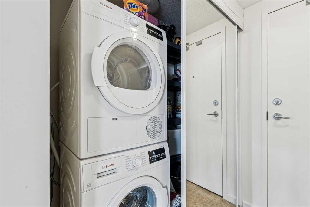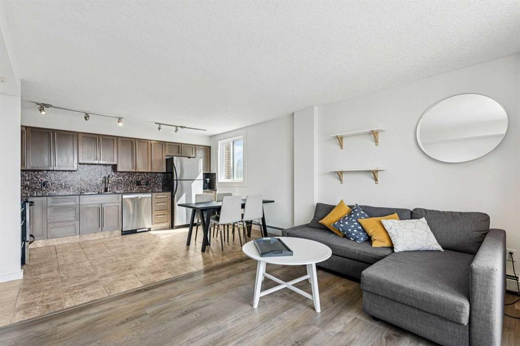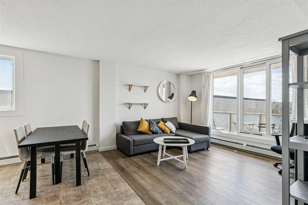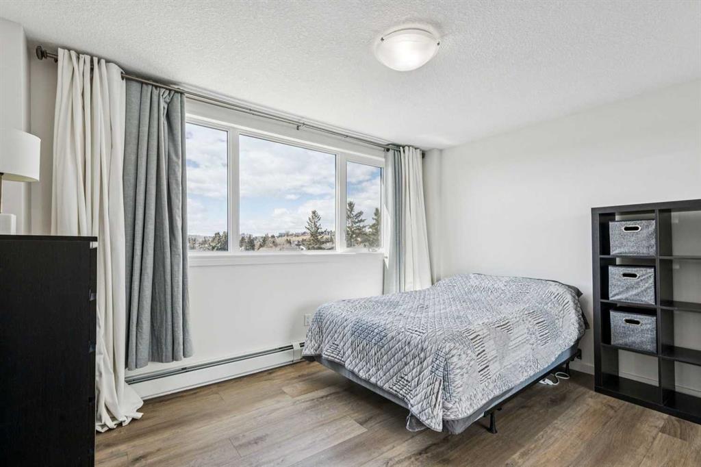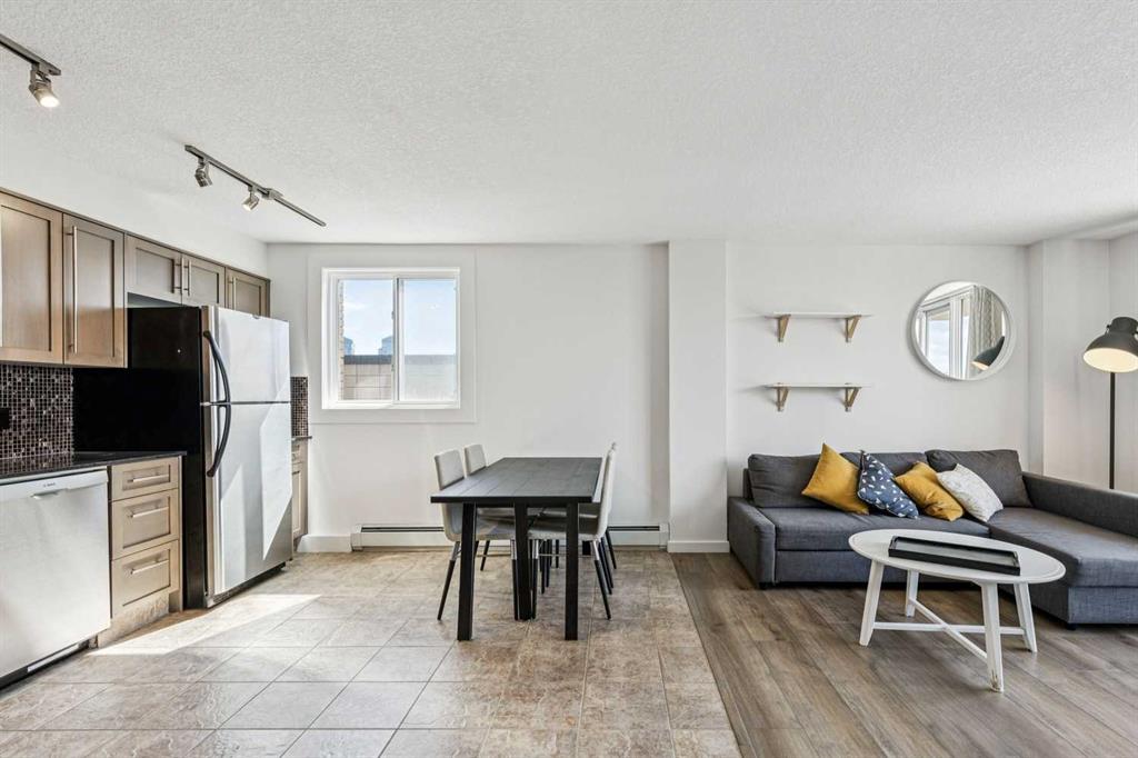 Meet “Haven” — a beautifully updated fifth-floor condo in The Vue in Hillhurst. This SW corner unit offers a bright, open-concept layout and is truly move-in ready (with the option to include furnishings). The stunning kitchen features sleek full-height cabinetry, a mosaic backsplash, granite countertops, a water filtration system, and stainless steel appliances, including a newer dishwasher and microwave. Designed for both everyday living and entertaining, the space easily accommodates a dining area and flows seamlessly into the living room. Large patio doors fill the home with natural light, while the spacious covered west-facing balcony is the perfect place to unwind and enjoy evening sunsets overlooking the tree-lined neighbourhood. Quietly positioned, this unit does not face 14th Street. The bedroom also enjoys west-facing views and offers a generous closet. A well-appointed 4-piece bathroom with tub and shower combines style and functionality. Additional features include in-suite laundry, ample storage (including a separate storage locker), and an assigned outdoor parking stall. The building also offers a gym and bike storage. Ideally located just steps to SAIT, Riley Park, the river pathway system, transit, downtown, and Kensington—enjoy easy access to some of Calgary’s best shops, restaurants, and green spaces.