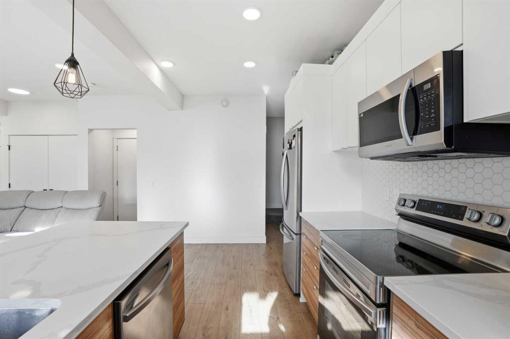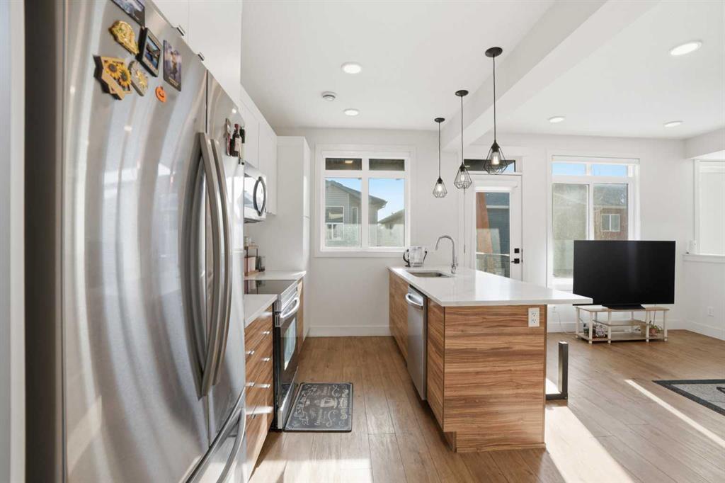 Gorgeous 3-Storey Townhome | Located in the Heart of Savanna NE | 3 Bedrooms | 2.5 Bathrooms | Sleek & Modern Design | Two Toned Kitchen | Honeycomb Backsplash | Stainless Steel Appliances | Kitchen Breakfast Bar | Open Floor Plan | High Ceilings | Large Windows | Incredible Natural Light | Recessed Lighting | 2 Balconies | Attached Garage. Gorgeous 3-storey townhome located in the heart of Savanna NE, offering 3 bedrooms, 2.5 bathrooms, and a sleek, modern design throughout. The front entry opens to stairs leading up to the bright and spacious main (2nd) level, while entry from the attached garage conveniently bypasses the lower level and also brings you directly to the main living space.