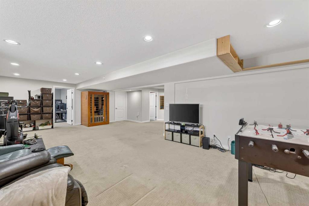 Welcome to 14 Cameron Close, an exceptional custom-built estate home tucked away in a private cul-de-sac in the prestigious Air Ranch community of Okotoks. Backing onto nothing but expansive green space and located near Crystal Ridge Golf Course, this home offers a rare blend of privacy, luxury, and natural beauty. Step inside to a grand foyer that immediately sets the tone for the scale and elegance found throughout. The main floor is thoughtfully designed with expansive living and dining areas anchored by a gas fireplace, ideal for both everyday living and entertaining. Large windows frame the surrounding greenery, filling the home with natural light. At the heart of the home, the gourmet kitchen features a striking poured concrete island, custom alder cabinetry, high-end appliances, and generous workspace. A dedicated main floor study provides the perfect home office or quiet retreat. Completing the main level is a well-appointed 2-piece powder room and a convenient laundry area, thoughtfully positioned for everyday functionality. Upstairs, the home continues to impress with a well-designed layout that balances luxury and functionality. The expansive primary suite serves as a true private retreat, featuring a generous sitting area, large windows overlooking the green space, and a spa-inspired ensuite designed for relaxation. Additional bedrooms are spacious and thoughtfully positioned, offering comfort for family or guests. The upper level also benefits from air conditioning, ensuring a cool and comfortable environment throughout the warmer months. The fully finished basement extends the living space with a large recreation and entertainment area complete with a gas fireplace, dry sauna, fourth and fifth bedroom, and a full bathroom—ideal for guests or family. The heated triple car garage is a standout feature, complete with a workshop, extensive built-in storage, and a rare adjoining gardening room for added versatility. The home also includes two furnaces, a water softener, a full sprinkler system, and a Hide-A-Hose central vacuum system with dedicated hoses on every floor and a kitchen-specific hose for effortless daily maintenance. Step outside to your private backyard oasis, designed for both relaxation and entertaining. Enjoy the new deck, slate pathways, fire pit, mature trees, and a dedicated dog run, all set against a peaceful backdrop of uninterrupted green space. The exterior has been meticulously maintained and updated with durable epoxy paint within the past 2–3 years, enhancing both curb appeal and longevity. Located in one of Okotoks' most sought-after communities, the west side of Air Ranch is synonymous with luxury estate living—offering large lots, mature trees, and a quiet, neighbourly atmosphere. This is a location that feels miles away from the city, yet remains close to all amenities. A rare opportunity to own a truly refined estate home where space, privacy, and timeless design come together seamlessly.