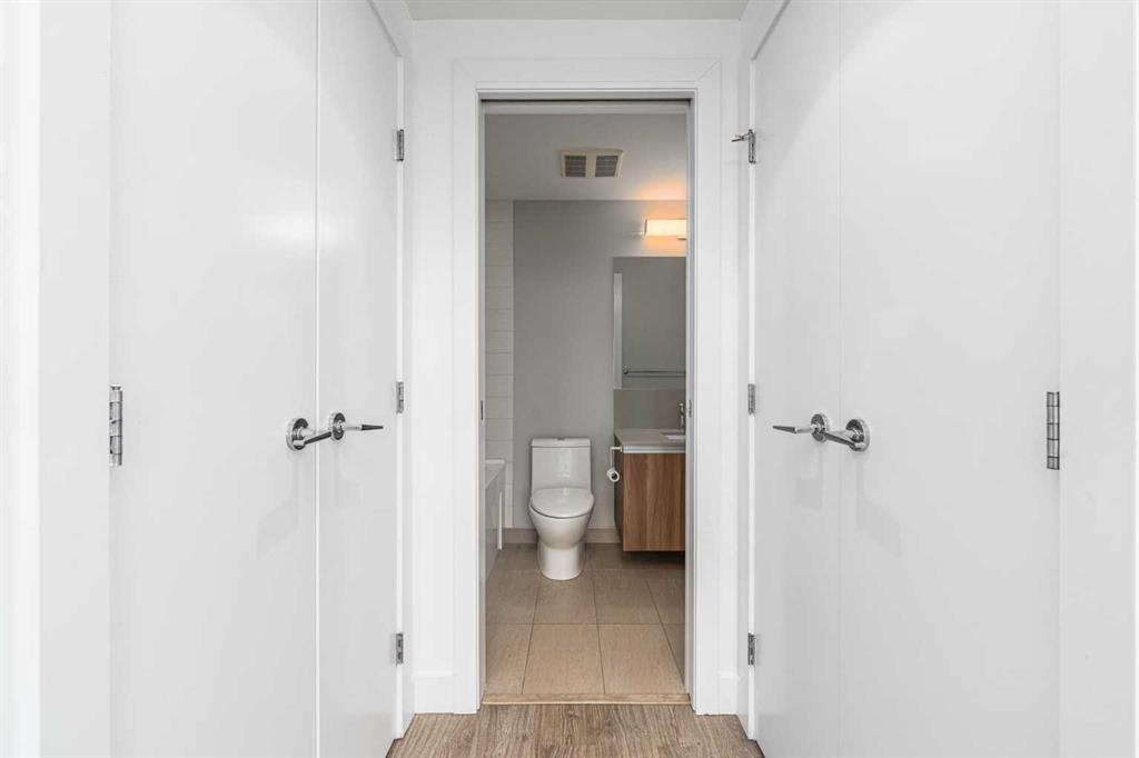 The primary bedroom offers a spacious layout with stunning city views, sliding-door closets, and a sleek ensuite. The second bedroom is thoughtfully positioned for privacy, ideal for a roommate, guests, or a stylish home office.