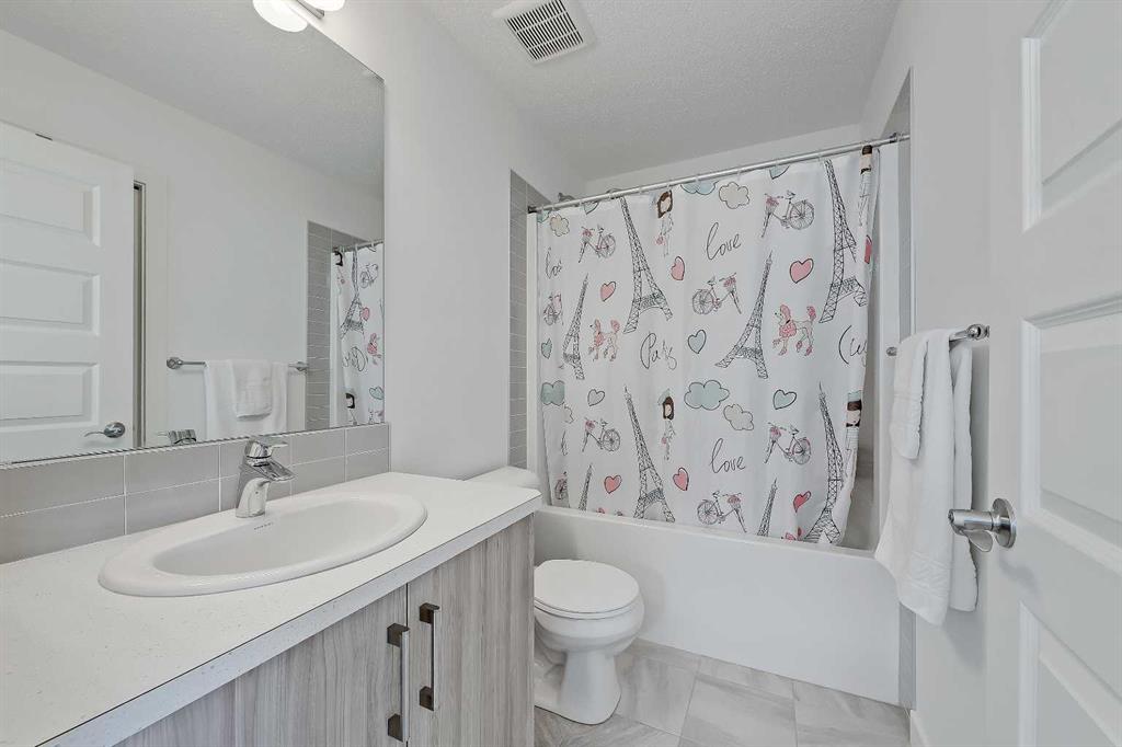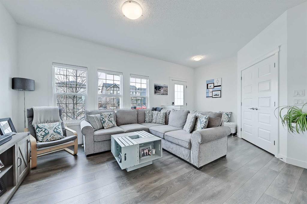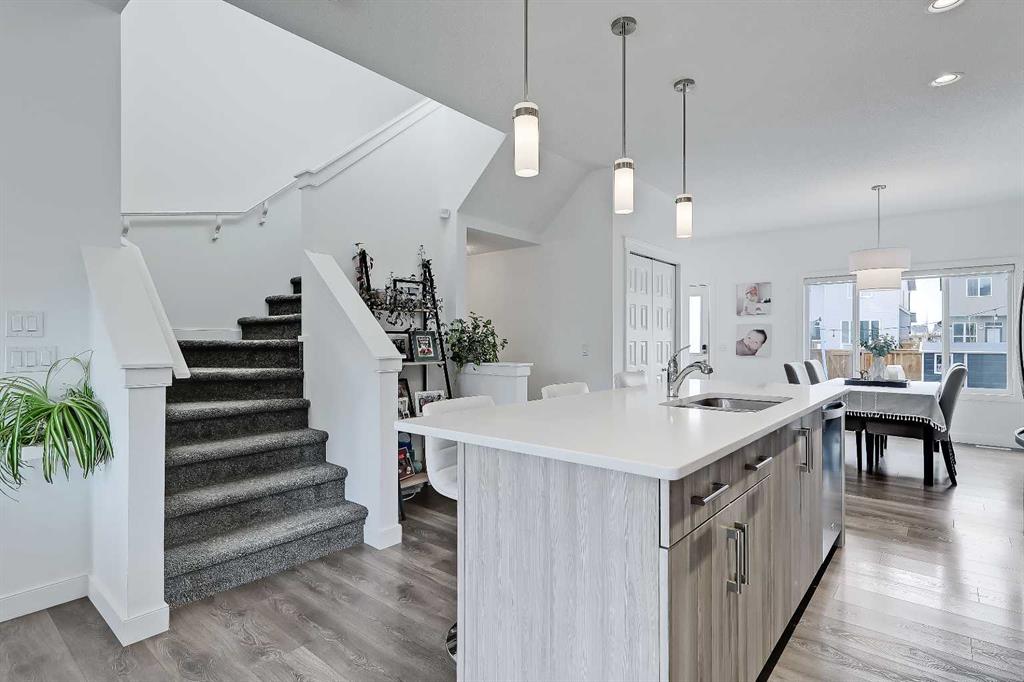 Well-maintained, move-in-ready semi-detached home in Evanston, perfect for young families and first-time buyers. Boasting over 2,000 sq ft of total living space, this property features a bright, open layout, thoughtful updates, and a fully developed basement. Inside, luxury vinyl plank flooring flows throughout the main floor. The front living room features large windows overlooking the street, filling the space with abundant natural light. The well-designed central kitchen offers quartz countertops, stainless steel appliances, tile backsplash and a central island with ample cabinetry. The adjacent dining area features a large window overlooking the backyard, bringing in additional natural light. Step onto the private, fully fenced and landscaped backyard with a large deck, a grassy area and a rear parking pad that accommodates two vehicles and allows for a future garage. A rear mudroom and a tucked-away powder room complete the main floor. Upstairs offers 3 generously sized bedrooms, including a primary suite with a walk-in closet. The 4-pc ensuite features dual sinks, and a separate walk-in shower. The 2nd and 3rd bedrooms share use of a full bath with tiled flooring and a tub/shower combo. A dedicated laundry room completes the upper level. The fully developed basement expands the living space with a large rec room, a guest bedroom, a full bathroom with a shower, and generous storage space. Living in Evanston offers a strong balance of convenience and community. Residents are just minutes from green spaces and recreation, including North Evanston Field & Park, as well as nearby playgrounds and pathways. Daily errands are easy with shopping options such as FreshCo and Walmart close by. Families also have access to multiple schools. With quick connections to Stoney Trail and Symons Valley Road, commuting across the city is straightforward and efficient.