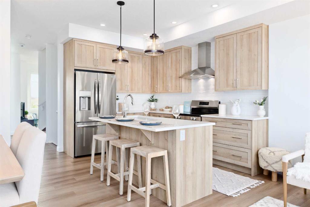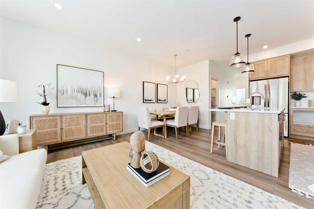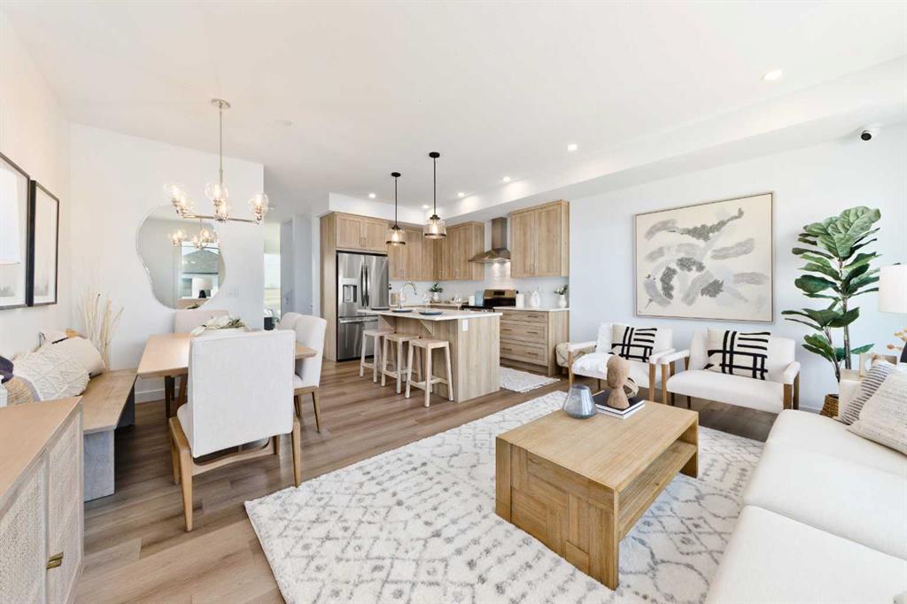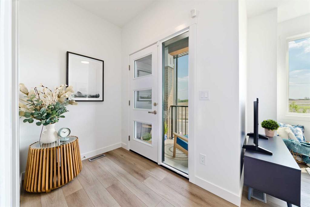 Welcome to the "Avery," a well-designed end-unit townhome offering over 1,700 sq ft of living space across three functional levels, with a bonus: an unfinished basement. With a thoughtful layout, multiple living areas, and a double attached garage, this home delivers and checks all the boxes. The main floor is bright and open, featuring a spacious living room that flows seamlessly into the dining area and kitchen. The kitchen is efficiently laid out with ample cabinetry, a pantry, a spacious island and a sleek stainless steel appliance package. Step out onto the private balcony just off the dining area, which is a perfect place for morning coffee or summer evenings. Upstairs, you'll find three bedrooms, including a generously sized primary retreat complete with a walk-in closet and private ensuite. Two additional bedrooms, a full bathroom, and convenient upper-floor laundry complete this level. The entry-level offers a versatile office or flex space, making it an ideal working-from-home space, home gym, or guest area, with access to the double-attached garage. The unfinished basement is a blank canvas, ready for your future development ideas. This home offers a smart layout, ample square footage, and the potential to add value over time, making it the perfect home for first-time home buyers, families, professionals, or investors alike. Situated in Calgary’s "new west," offering quick access to the mountains and downtown via the Stoney Trail ring road. The community includes interconnected parks, creative natural playgrounds, tree-lined boulevards, and upcoming commercial spaces featuring cafes and services. *Photos are of the show home and are representative. RMS has been applied to the construction drawings provided by the builder. Taxes to be assessed.