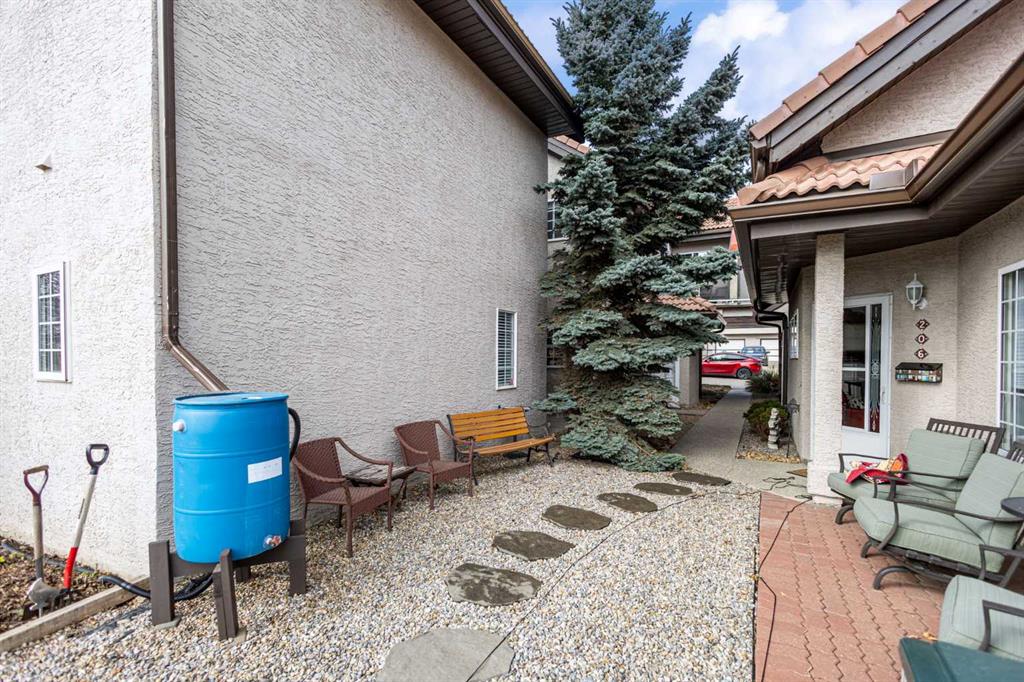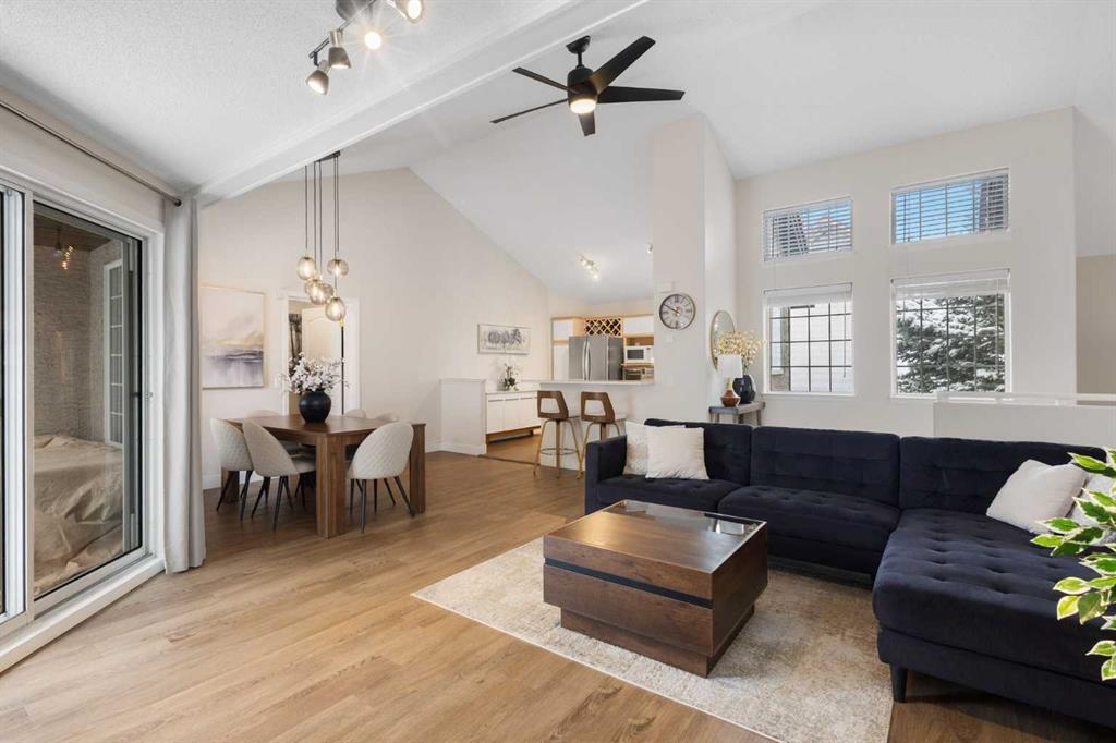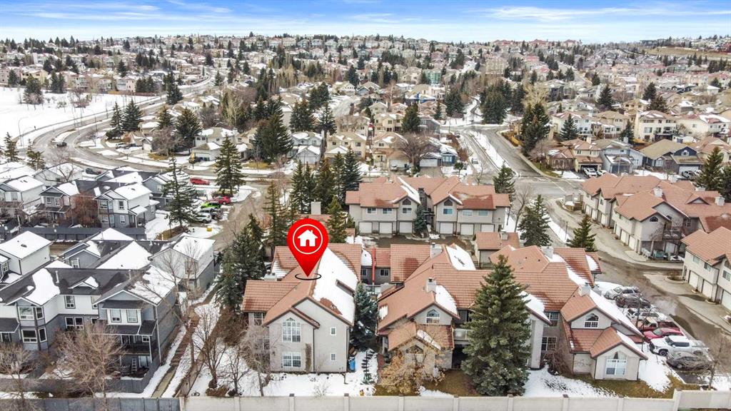 Outside the door: Sunterra Market, Starbucks, West Market Square, medical, dental, pharmacies, and the Bow River pathways are all inside a five-minute walk. Signal Hill and West Hills Shopping Centres are seven minutes by car. The complex has a private clubhouse residents actually use for gatherings, plus assigned parking directly beside the unit and ample visitor stalls.