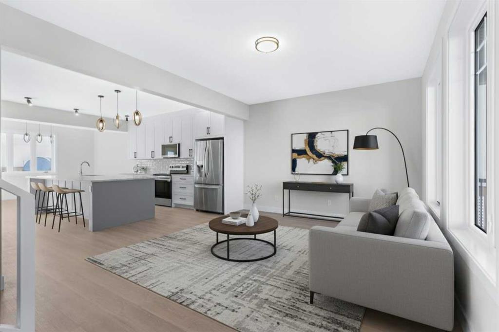 ACT NOW! Possession for May 2026! Quality new construction home built by a local Master Builder in Crossfield, who has lived in the community for 30+ years! Situated on what is arguably the best lot in this new development, this West facing end unit provides additional parking options and overlooks the baseball diamond and adjacent green space. Additionally, this location offers walking distance two schools, the local Community Centre and just minutes from the quaint downtown offering a multitude of amenities. This 3 bedroom, 3 bathroom semi-detached home spans over 1500 sq ft and features an open main floor layout. The Kitchen boasts abundant cabinetry, high-end appliances, and a beautiful, functional center island, ideal for extra counter space, homework, and entertaining guests. A patio door off the dining area leads directly to the deck and back yard, uncommonly found in this price point. This home has back lane access and a parking pad, a garage could still be added at an additional cost. Upstairs, the Primary Bedroom includes a walk-in closet and full ensuite bathroom. The two additional bedrooms are generously sized with convenient access to the centrally located main bathroom. Laundry is also conveniently located on this upper floor. Additionally, the home features side door access for private entry to the unfinished basement, allowing for additional future living space and includes bathroom rough-in. What sets this home apart is its construction by a Local Master Builder, employing Journeyman Tradesmen in all aspects of the build. These builders, along with their families, have been part of this community for multiple generations and take pride in constructing quality homes for local families. No expense has been spared in the use of upgraded materials during both the building process and the finishing touches. Features include Lux windows, stone countertops, upgraded plumbing fixtures and lighting fixtures, as well as higher-end appliances which includes the washer and dryer, also not a common inclusion. This home is currently under construction. There is still some opportunity for custom upgrades, if you act fast! The area size was calculated by applying the RMS to the blueprints provided by the builder.