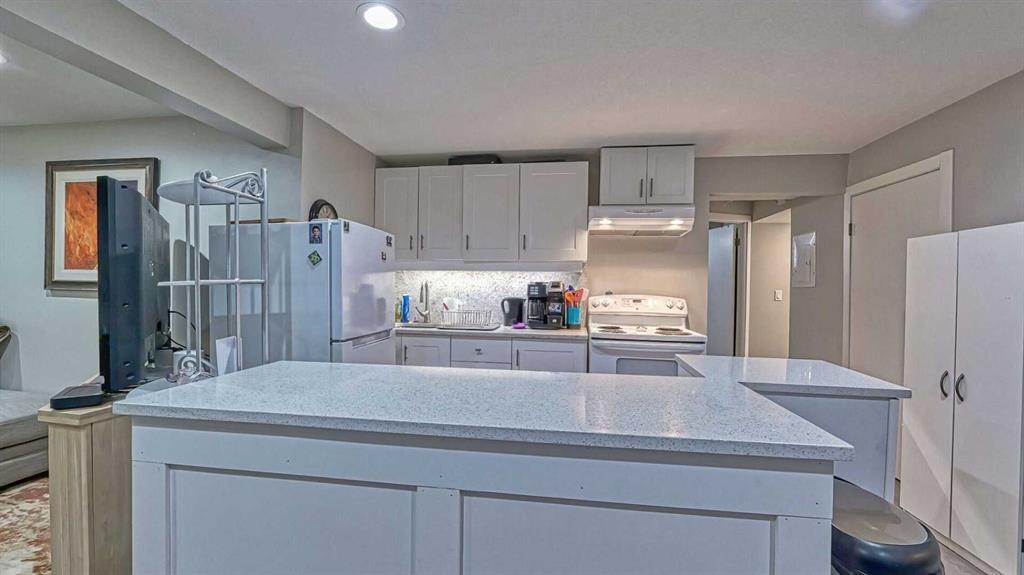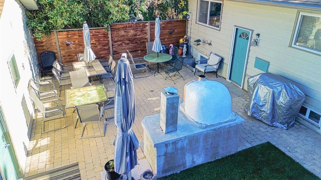 Welcome to this Keith-built bungalow in the sought-after lake community of Midnapore. Tucked on a quiet street ending at a pathway into Fish Creek Provincial Park, this home is also just a 10-minute walk to Midnapore Lake, offering year-round private access for swimming, paddleboarding, skating, and more. The home boasts excellent curb appeal with durable Hardie board siding, a poured concrete walkway, and a welcoming front deck—perfect for morning coffee or evening relaxation. The backyard is designed for outdoor living, featuring a 21’ x 22’ stone patio, wood-burning pizza oven, and built-in fireplace. Both front and back yards offer lush lawns with an underground sprinkler system. An oversized, heated double garage is insulated, drywalled, and equipped with its own electrical panel, built-in shelving, and a workbench. Inside, the spacious kitchen features quartz countertops, stainless steel appliances, a gas stove with dual-fuel oven, two pantries, and a large peninsula overlooking the open-concept dining and living area. The main floor is bright and inviting, with knockdown ceilings, pot lighting, and a large southeast-facing window. The fully renovated main bathroom includes modern tile, a contemporary vanity, and a walk-in shower. The primary bedroom offers a 2-piece ensuite, with two additional bedrooms nearby. A cleverly hidden stacked washer/dryer is located on the main floor behind a sliding barn door. Downstairs, recent mechanical upgrades include a new furnace (2025) and air conditioning (2023). The self-contained illegal suite features an open-concept layout with kitchen, living and dining areas, a 4-piece bathroom, private laundry, storage, and two large bedrooms with egress windows. Currently rented for $1,500/month, it’s ideal for rental income, extended family, or guests. Located near excellent schools, parks, shopping, and dining, with quick access to Macleod Trail, this home combines comfort, convenience, and lifestyle in one exceptional package.