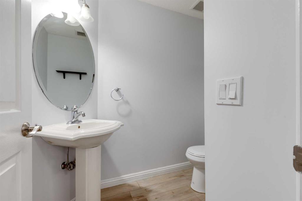 Welcome home to this spacious 4 bedroom, 3.5 bathroom two storey situated on a massive 6200 square foot lot in the sought after Airdrie community of Sagewood. This property offers a fantastic opportunity for investors, renovators, or buyers looking to build equity. It requires some cosmetic upgrades and has been priced accordingly, making it an excellent chance to get into a well built home with plenty of potential. The main floor features gorgeous hardwood plank flooring, a large living room with a gas fireplace, and a bright dining area surrounded by windows overlooking the backyard. The kitchen is designed for both everyday living and entertaining with built in appliances including a double oven, a corner pantry, and a central island with raised eating bar seating. Triple pane windows are featured on the main and upper levels, while the Google Nest smart home system provides added control and convenience, and the Pixel permanent outdoor lighting allows for year round exterior lighting. Upstairs offers a spacious bonus room, upper level laundry, and three well sized bedrooms including a generous primary retreat with a walk in closet and a full ensuite