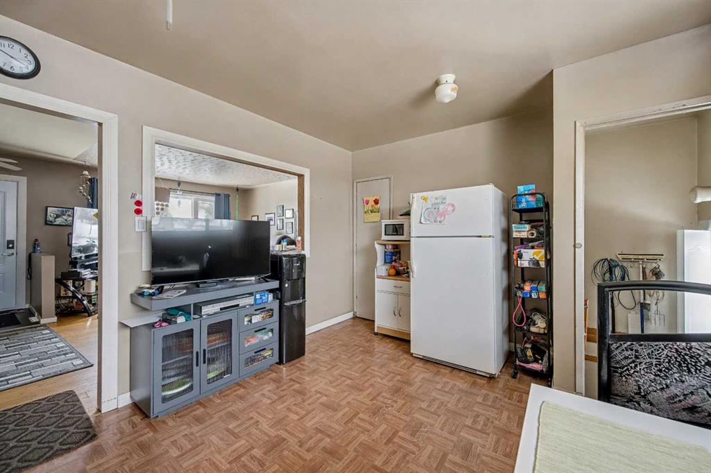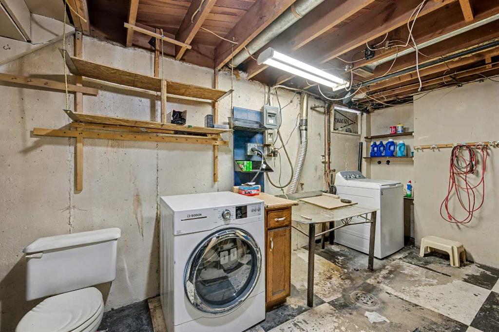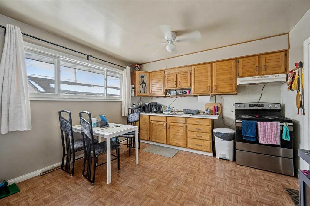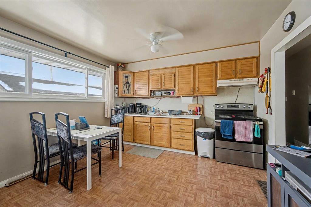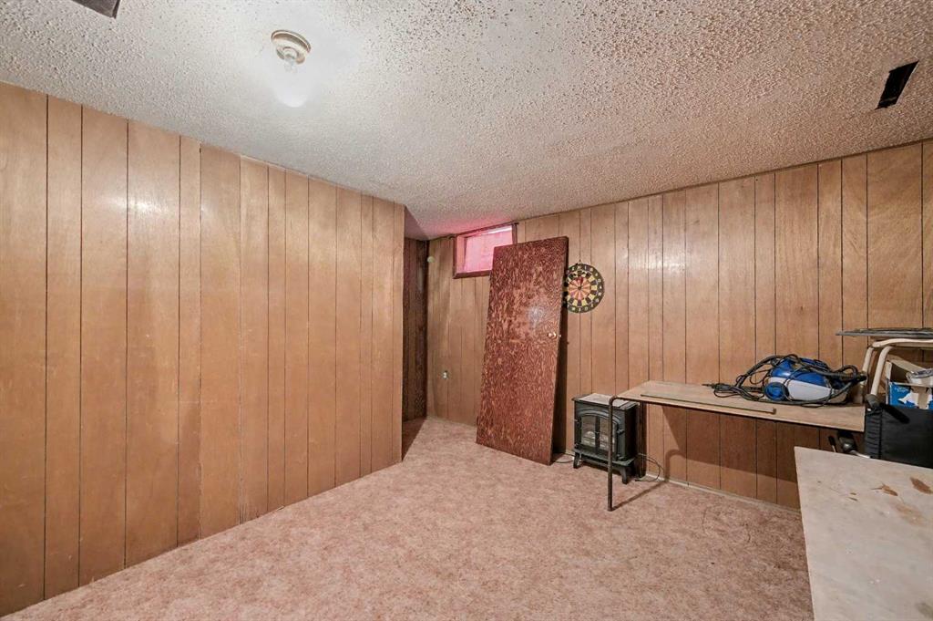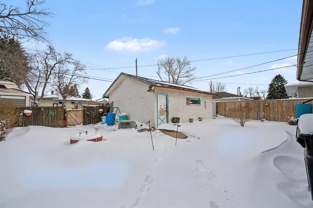 This bungalow offers solid value and is located on a quiet street next to a park. With 1,061 square feet above grade, the main floor includes three bedrooms, a spacious living room, and a kitchen with an eating area. The living room and hallway feature solid hardwood flooring that could be refinished, while the remaining rooms have linoleum. The home has had some key updates over the years, including main floor windows (2024), furnace and central air (2014), roof shingles (2010), and new doors (2026). The main bathroom has been converted to a three-piece for accessibility. The basement includes two additional bedrooms, a recreation space, and a large laundry/mechanical room. The second bathroom requires work but has existing plumbing in place. Outside, there is an oversized double detached garage and a large backyard. Located in Forest Lawn, close to elementary, junior high, and high schools, as well as shopping, transit, and major routes. A good opportunity for buyers looking to update and add value.