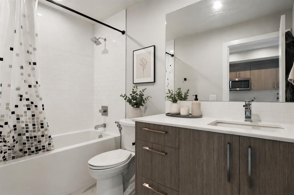 TOP FLOOR living at it's best, this beautifully designed 2-bedroom, 1-bathroom condo offers stunning city views and a layout that truly makes the most of every square foot. The open-concept main living space is bright and inviting, with large windows that flood the home with natural light and create a seamless connection to the private balcony—perfect for morning coffee or unwinding while taking in the skyline. The kitchen is both functional and stylish, featuring quartz countertops, modern cabinetry, stainless steel appliances, with gas stove—ideal for those who love to cook and entertain. The living and dining areas flow effortlessly together, creating a comfortable space for everyday living. Both bedrooms are well-proportioned and versatile, whether you need a guest room, home office, or both. The bathroom is finished with clean, contemporary details that keep the space feeling fresh and timeless.