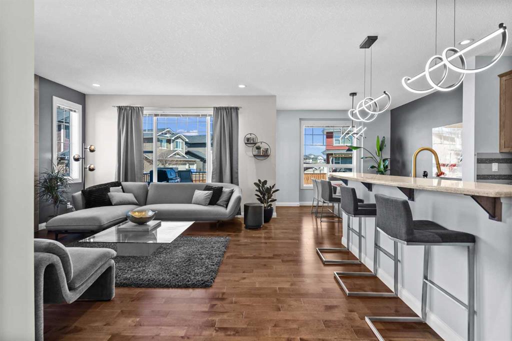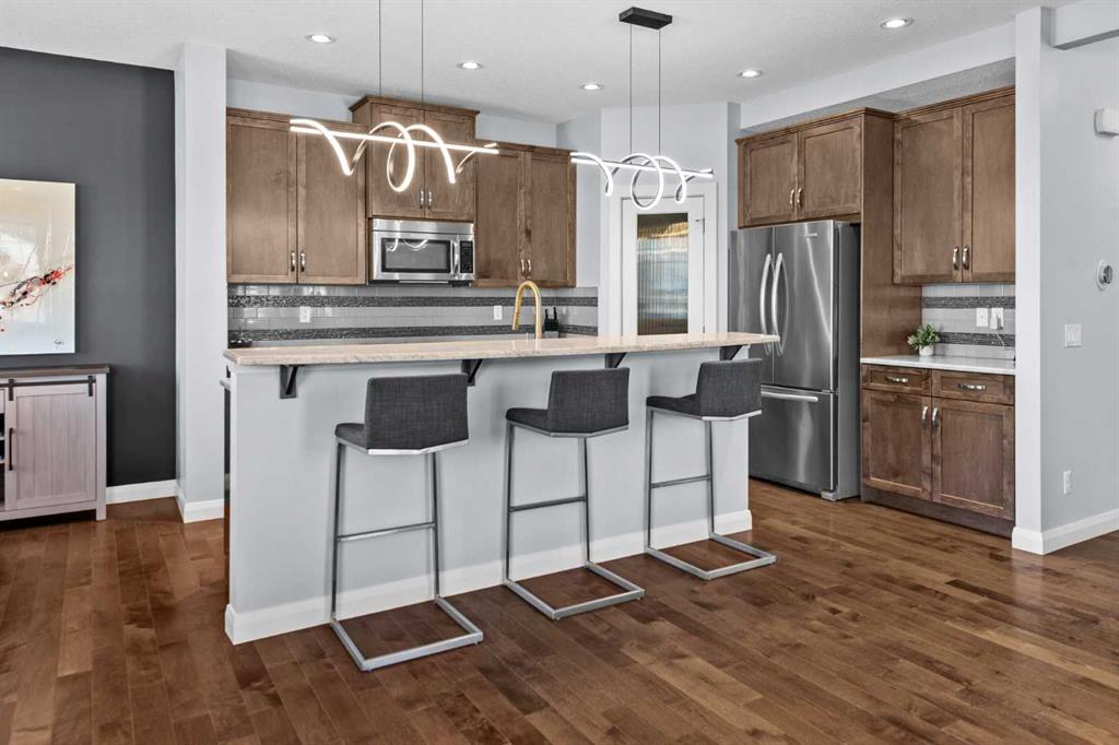 Welcome to Kinniburgh North, where lifestyle, location, and luxury come together effortlessly. Situated on an expansive corner lot, this lovely 2-storey home is perfectly positioned just steps from East Lake School (K–9), Camp Chestermere, parks, playgrounds, sports fields, pathways, and shopping—and only minutes from the shores of Chestermere Lake. A unique design, this home features a welcoming side entrance with a covered porch—perfect for greeting guests or enjoying a quiet place to relax. Inside, the home showcases contemporary colours paired with timeless finishes and an exceptional level of care throughout. The main floor offers rich hardwood flooring, an inviting tiled gas fireplace, and a bright open-concept layout framed by oversized picture windows that flood the space with natural light. The chef-inspired kitchen is complete with granite countertops, stainless steel appliances, a gas range, a corner pantry for exceptional storage, and seamless access to the back deck with a gas BBQ hookup—perfect for entertaining. Functionality meets style with a main floor laundry and mudroom that connect directly to the massive oversized double garage (21.5' x 25'). Upstairs, three spacious bedrooms await, including a serene primary retreat with a large walk-in closet and a luxurious ensuite featuring a soaker tub and separate shower. A large bonus room completes the upper level, ideal for family living or a media space. The full basement is currently set up as a substantial home gym with a dedicated office area and includes a bathroom rough-in, offering endless future potential. Outside, the generous corner lot offers a fully fenced yard with plenty of space to play, a patio area for relaxing or hosting, and a low-maintenance illuminated feature garden that adds standout curb appeal. This location truly delivers the full package, with easy access to beaches, waterfront parks, and bike pathways connecting toward Calgary. Quiet streets, strong community spirit, and close proximity to recreation, schools, and major commuter routes make this an exceptional opportunity in a highly sought-after neighbourhood.