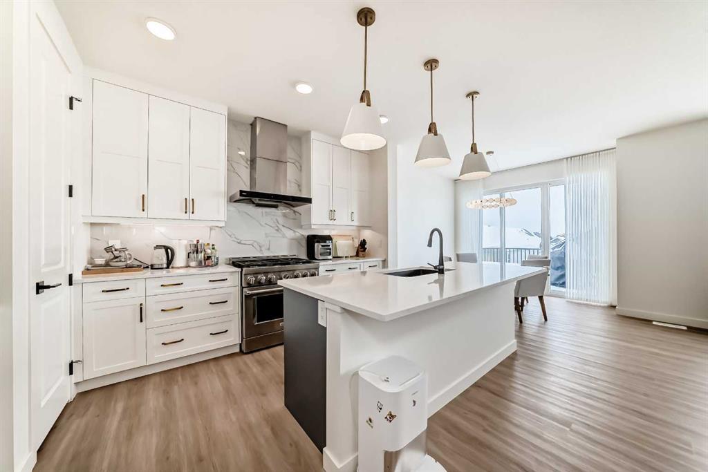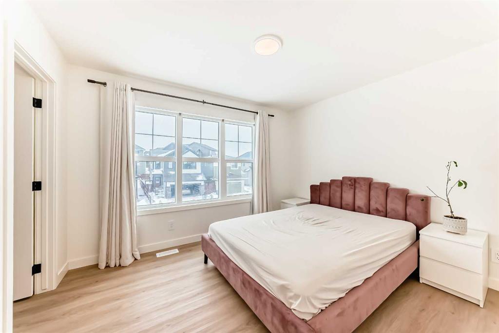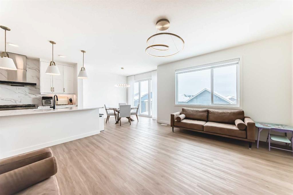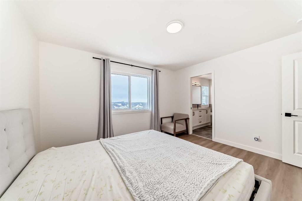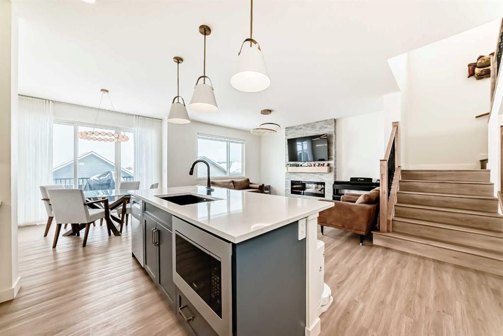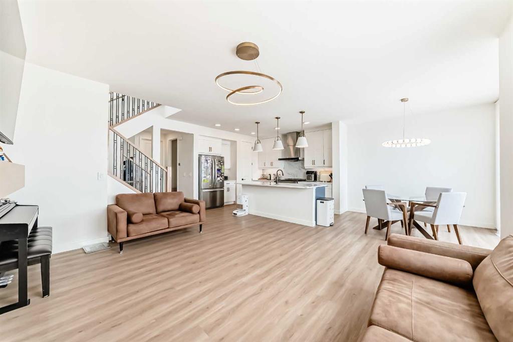 Welcome to this beautifully upgraded walkout home in the highly desirable, family-friendly community of Vermilion Hill in Alpine Park. Offering over 2,100 sq.ft. of thoughtfully designed living space, this home features over $150,000 in upgrades and showcases quality finishes throughout, including full flooring upgrades, upgraded lighting, and full-height lacquered kitchen cabinetry with adjustable LED cabinet lighting. The bright and spacious main level is filled with natural light and features a cozy fireplace, a stunning quartz island with sink and gold accents, high-end stainless steel appliances, a 36" KitchenAid cooktop with 23,000 BTU, a 36" 1300 CFM hood fan, Bosch 800 Series dishwasher, and a 3-piece bathroom. The dining and living area opens to a large rear deck, perfect for entertaining or relaxing outdoors. Upstairs, including the generous bonus room, convenient laundry, two additional good-sized bedrooms, a full 5-piece bathroom, and a spacious primary retreat with a luxurious 5-piece ensuite, and beautiful views of downtown and the Rocky Mountains. The 9-ft walkout basement offers excellent future potential. Additional features include a whole-home water softener and fully completed landscaping with concrete walkway and patio. Conveniently located close to schools, shopping, transit, and amenities, this exceptional home is one you do not want to miss.