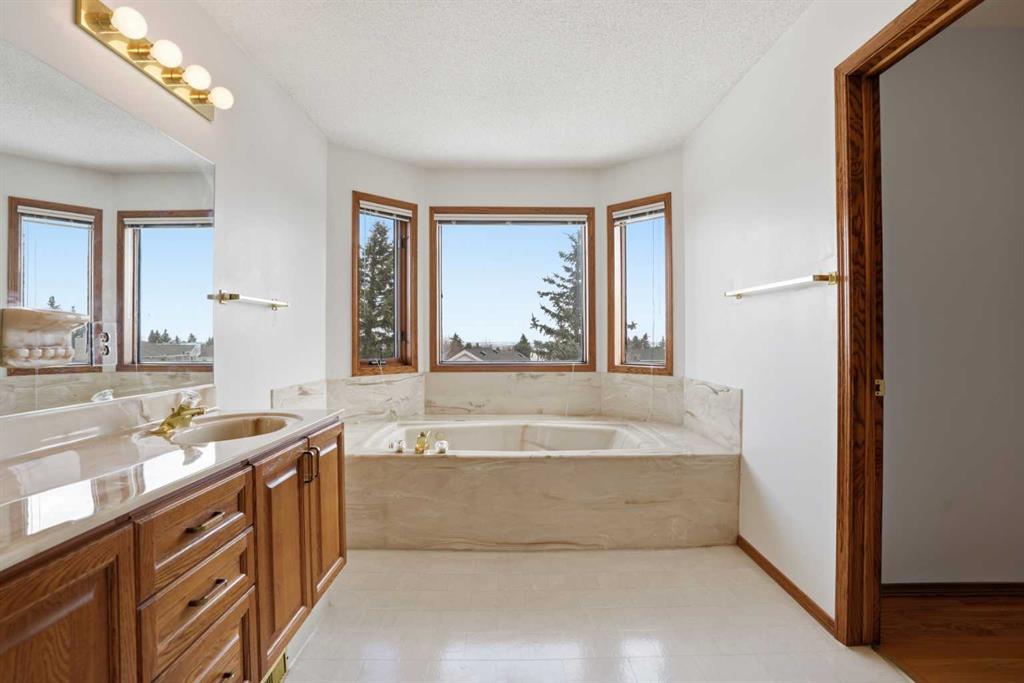 WOW – first time ever listed for sale! Take a look at this immaculately maintained, original-owner home, in the sought-after community of Sandstone Valley! Offering an impressive 3,861 square feet of fully developed living space, this home features 5 spacious bedrooms and 3.5 bathrooms, and includes an illegal walk-out basement suite — ideal for extended family or potential rental income! Noteworthy upgrades/features here include: a newer Spanish clay tile roof, durable stucco exterior, two furnaces for efficient climate control, two cozy fireplaces that add warmth and character, flawless hardwood flooring, soaring vaulted ceilings, and built in cabinetry/shelving throughout. The oversized double attached garage is drywalled and insulated, and there is a long front driveway for additional parking. Enjoy the incredible sun-filled, private, east-facing backyard — with sprawling deck (with gas BBQ hookup), covered concrete patio, expansive garden (corn, beans, tomatoes, potatoes, zucchini, parsley, basil, and other herbs), and a shed for additional storage. Close to all amenities: schools, retail, parks, and pathways! Don’t miss out, call today to book your showing!