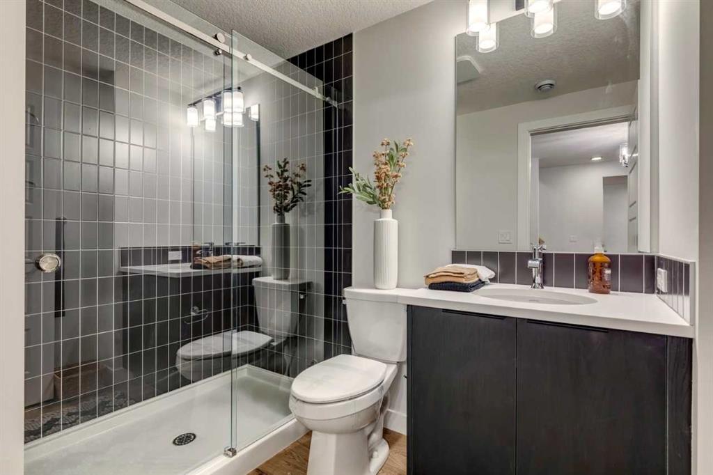 Built by a trusted builder with over 75 years of experience, this home showcases on-trend, designer-curated interior selections tailored for a home that feels personalized to you. Energy efficient and smart home features, plus moving concierge services included in each home. The kitchen offers a functional layout with a central island, chimney hood fan with microwave built into the upper cabinets, gas line for a future range, and a convenient walk-through pantry with broom storage. The main living area is anchored by a cozy electric fireplace, while large additional windows bring in an abundance of natural light. Upstairs, enjoy a vaulted bonus room and a well-appointed 3-piece ensuite featuring a fiberglass base shower with tiled walls, ledge, barn-style glass door, and a bank of drawers in the vanity. The walkout basement includes a 1 BEDROOM LEGAL SUITE, complete with its own kitchen and a stylish bathroom featuring a tiled shower with barn glass door.