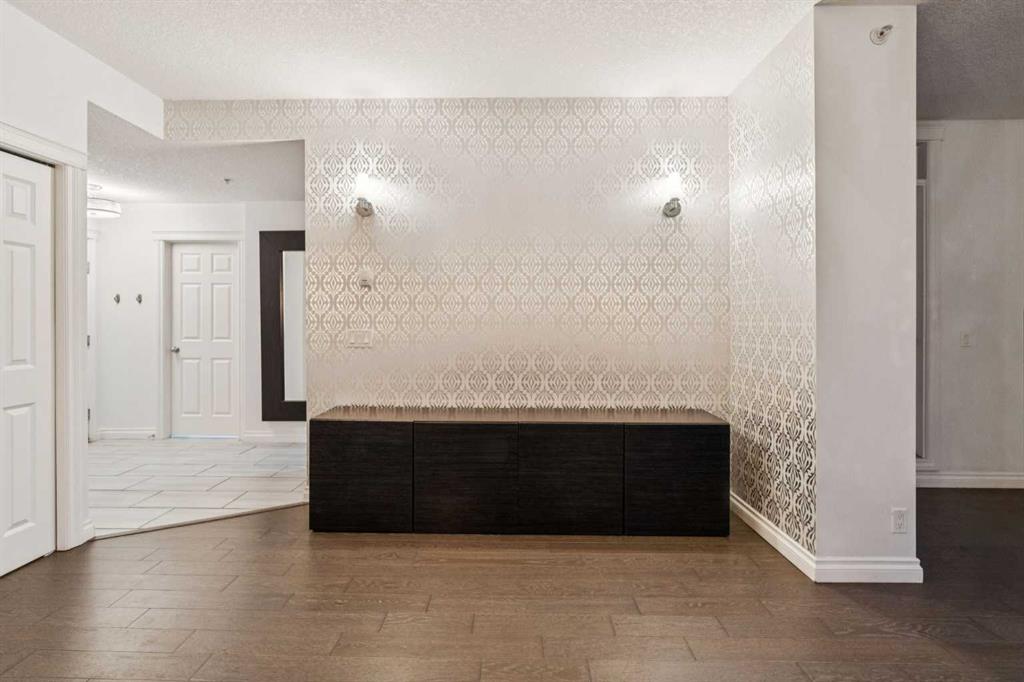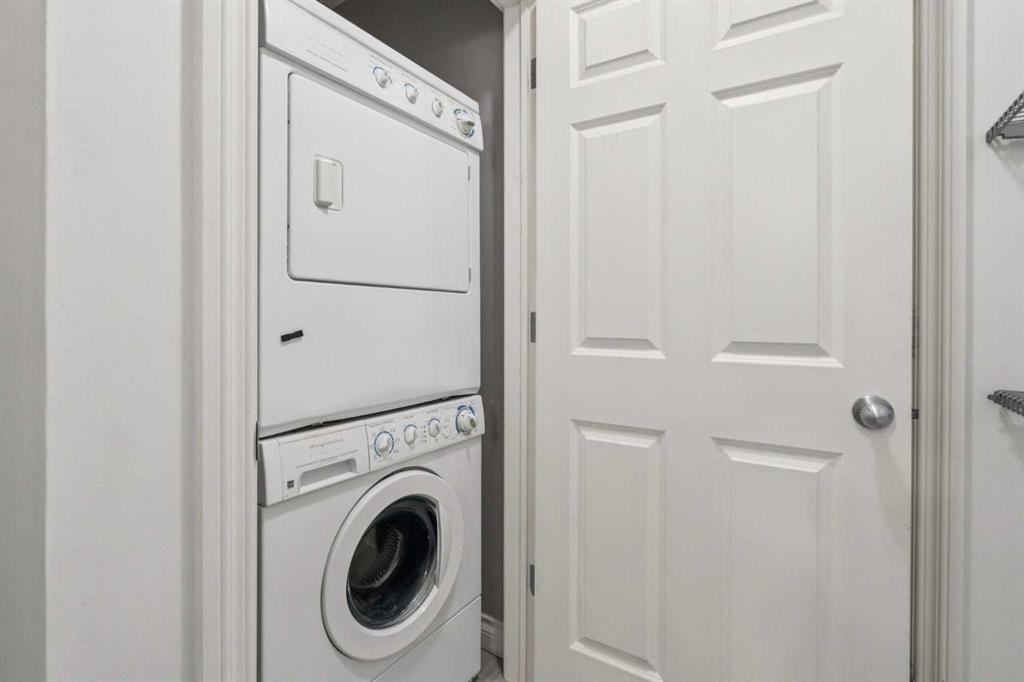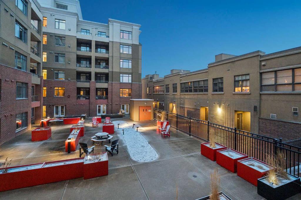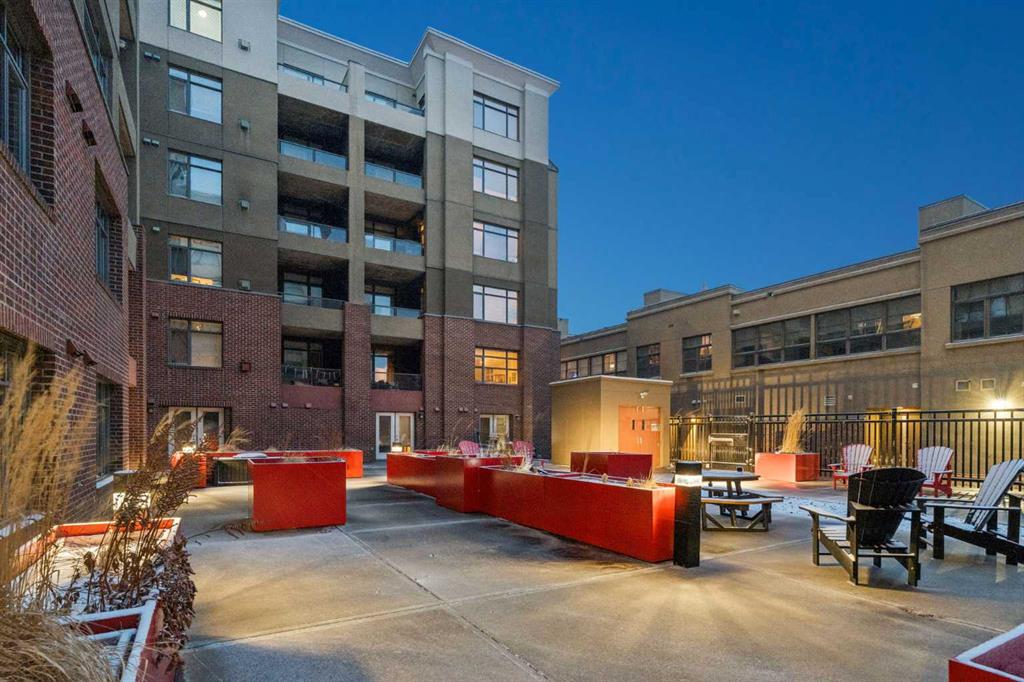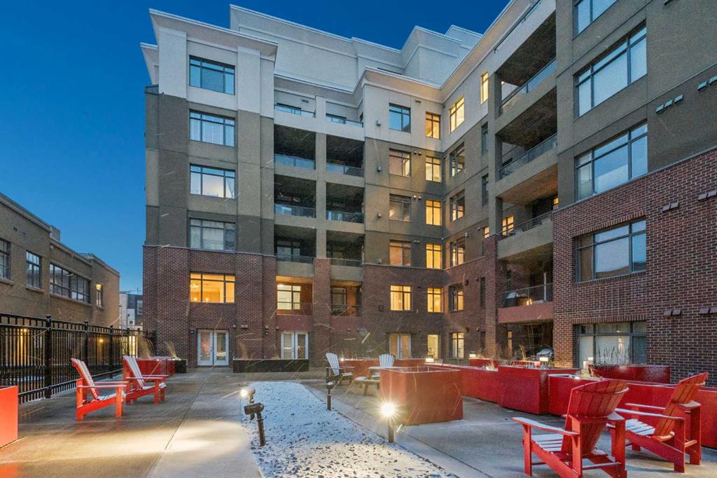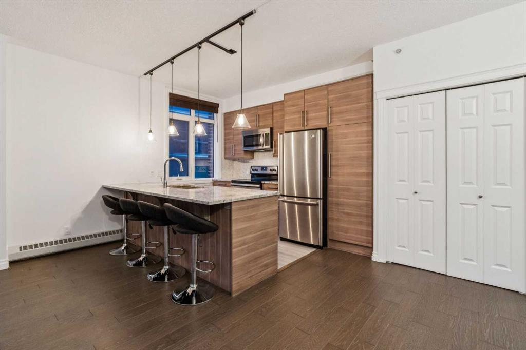 This thoughtfully updated 1-BEDROOM + DEN END-UNIT condo features a fully renovated kitchen with MARBLE COUNTERTOPS, STAINLESS STEEL APPLIANCES, a stylish backsplash, and HARDWOOD FLOORING. Extensive cabinetry provides exceptional storage and functionality. The updated four-piece bathroom offers a clean, modern finish. Located in a SOLID CONCRETE BUILDING, the home provides enhanced soundproofing and long-term durability. With both WEST AND NORTH EXPOSURES OVERLOOKING THE COURTYARD, the space is filled with natural light throughout the day. The OPEN CONCEPT living area is defined by 9-FOOT CEILINGS, contemporary lighting, and a refined feature wall, creating a comfortable setting for both everyday living and entertaining. The spacious primary bedroom includes a large closet and convenient ENSUITE ACCESS, while the den offers a versatile space for a home office or additional storage. Additional convenience includes EN SUITE LAUNDRY. Positioned in the HEART OF BRIDGELAND, directly across from a park that hosts a popular weekly summer farmers’ market, and just a short walk to the C-TRAIN, RIVER PATHWAYS, CAFÉS, RESTAURANTS, AND FITNESS STUDIOS. Additional features include a HEATED UNDERGROUND TITLED PARKING STALL, secure storage locker, bike storage, visitor parking, and a car wash bay. PET-FRIENDLY with board approval.