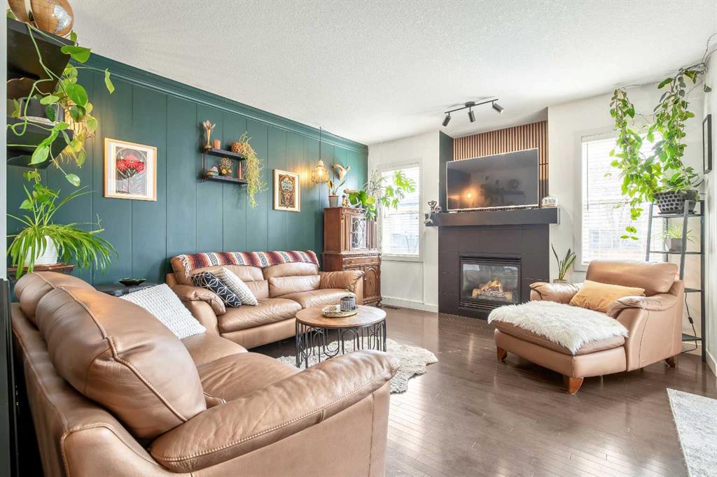 Welcome to this beautifully maintained family home, offering a bright and functional open-concept layout designed for modern living. The main floor features hardwood flooring and large windows that fill the space with natural light. The spacious living room is anchored by a cozy gas fireplace, while the adjacent dining area provides direct access to the backyard—perfect for everyday living and entertaining.