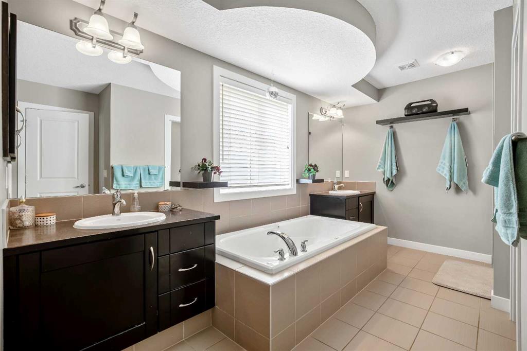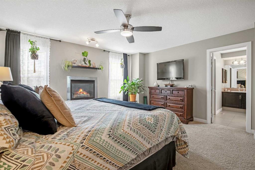 Upstairs, you’ll find three generously sized bedrooms, a full 4-piece bathroom, and a large bonus room—perfect as a play area, home office, or additional family space. The primary suite is a true retreat, impressively sized to accommodate a private sitting area, and complete with its own cozy gas fireplace. The luxurious ensuite includes a soaker tub, double vanities, a separate shower, and a walk-in closet. The upper-level laundry room adds convenience, offering countertop space and drying racks.