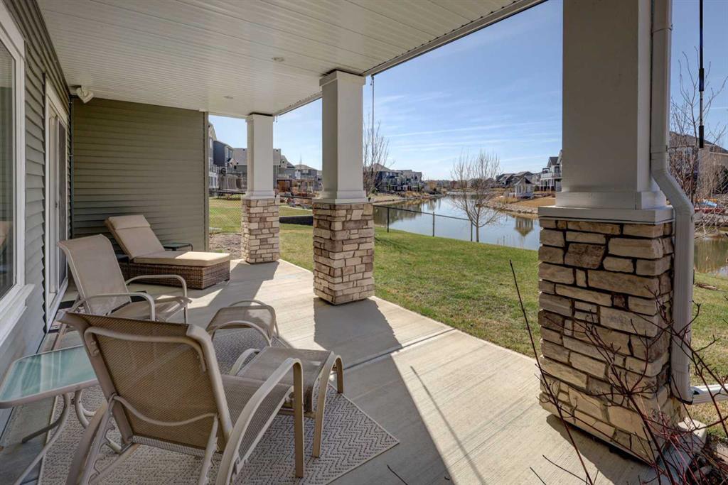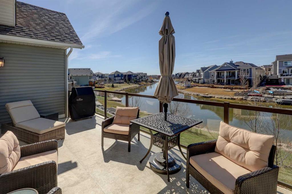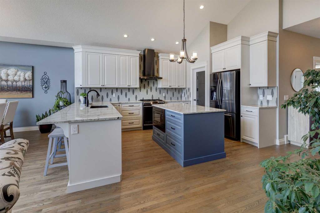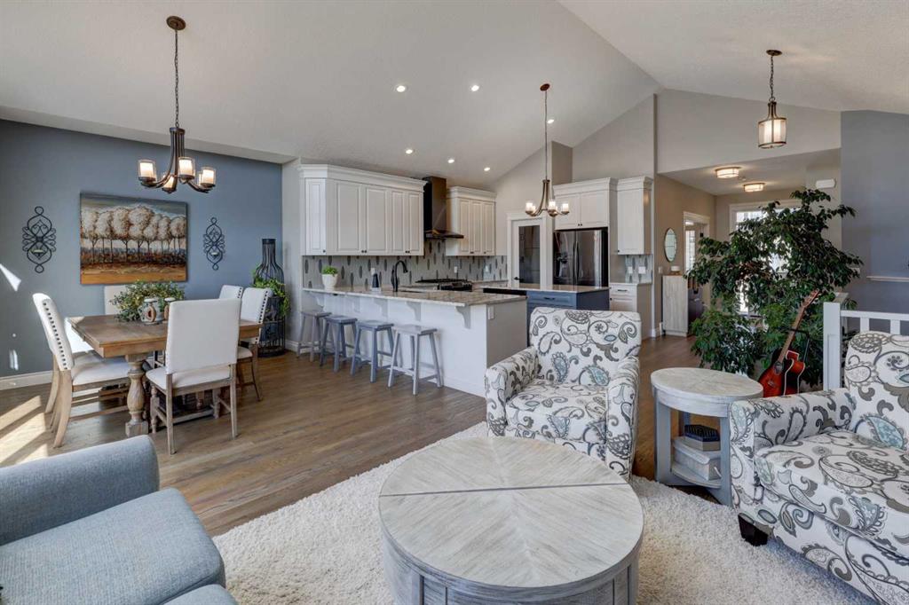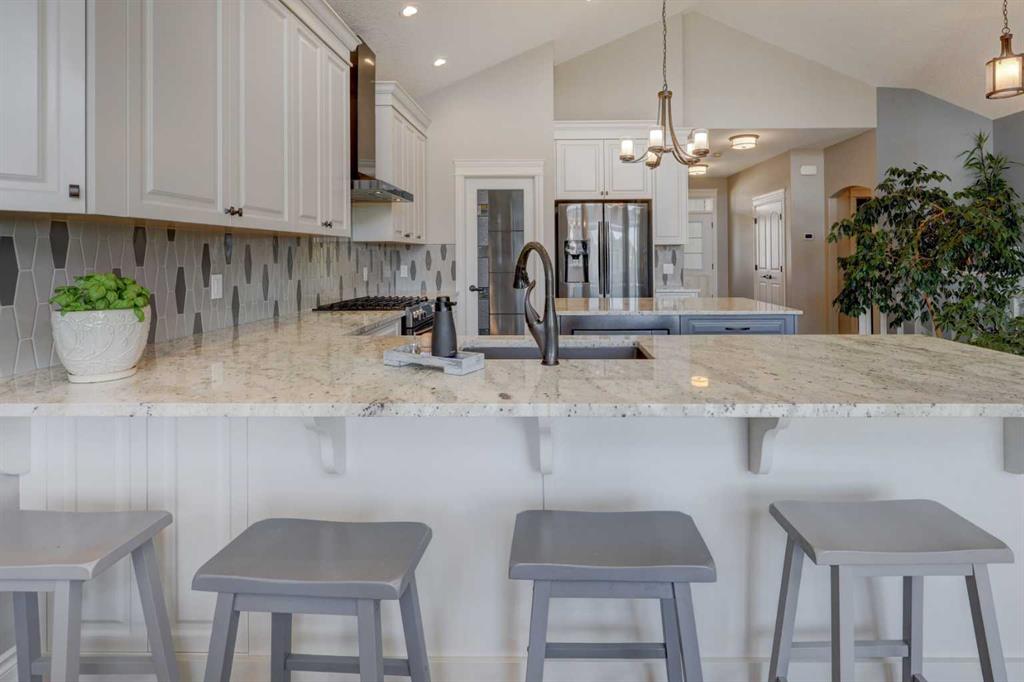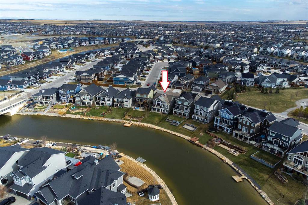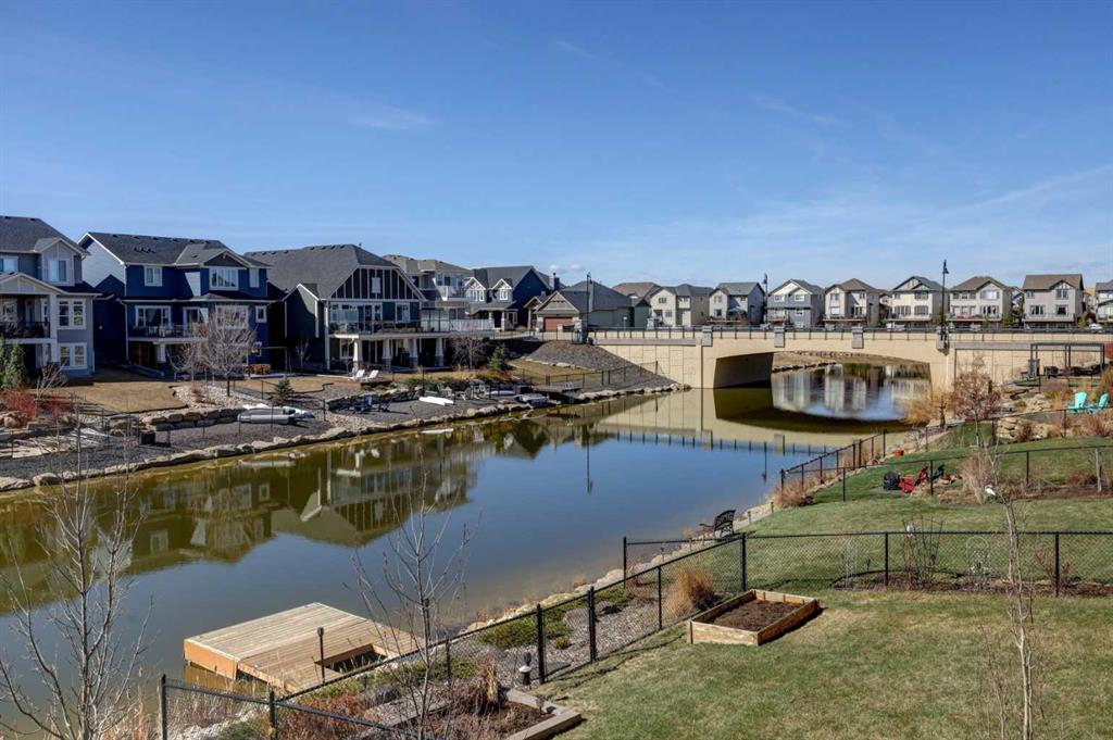Welcome to this custom built McKee bungalow, proudly offered by the original owner and perfectly positioned on the waterfront in Bayside Estates. Featuring a triple tandem heated garage, this home offers exceptional space for all your vehicles, tools and toys. Step inside to a bright and inviting main floor, showcasing rich hardwood flooring and 9 foot ceilings throughout, complemented by central air conditioning to keep you comfortable year round.. Just off the entrance, a dedicated home office provides the ideal space for remote work or quiet study. As you move further in, the chef-inspired kitchen impresses with custom colors, including cream cabinetry, Black stainless steel appliances, granite countertops with a breakfast bar and a walk-in pantry with an elegant French door. The heart of the home is highlighted by soaring vaulted ceilings and stunning south-facing windows that flood the dining and living areas with natural light. A cozy fireplace creates the perfect ambiance for relaxing evenings. The spacious primary retreat offers a true escape, complete with a luxurious 5 piece ensuite featuring a soaker tub, separate shower, dual vanities and a walk in closet. Step out from the living room onto the expansive upper deck, finished with durable Duradek, where you can take in peaceful waterfront views. A convenient 2-piece bathroom and main floor laundry complete this level. Downstairs, the fully developed walkout basement is designed for entertaining, featuring 9 foot ceilings and a massive recreation and games area with a second fireplace. A custom-built wet bar and kitchenette add both function and flair. This level also includes two additional bedrooms and a 4-piece bathroom. Outside, your private backyard oasis awaits—complete with a concrete patio and direct water access. Whether you're considering a future dock or simply enjoying the setting, this space is perfect for morning coffee or unwinding with a glass of wine in the evening. Located just a short walk to Nose Creek School (K–4) and close to parks, playgrounds, sports fields, shopping, restaurants, and everyday amenities, this home offers an unbeatable lifestyle. Waterfront. Luxury. Location. This one truly has it all.