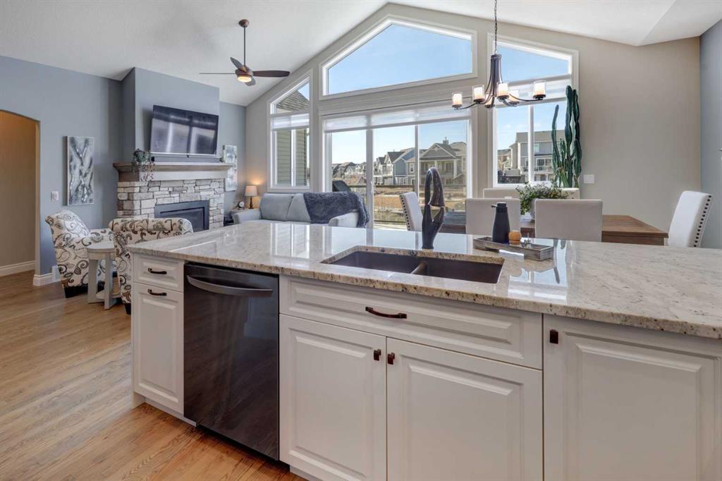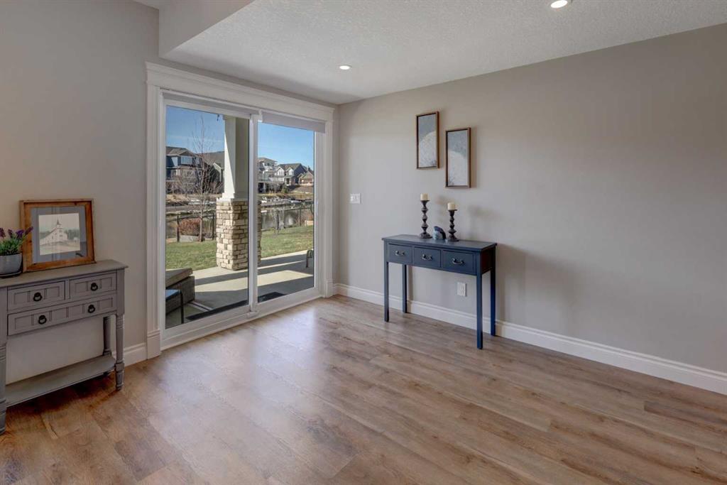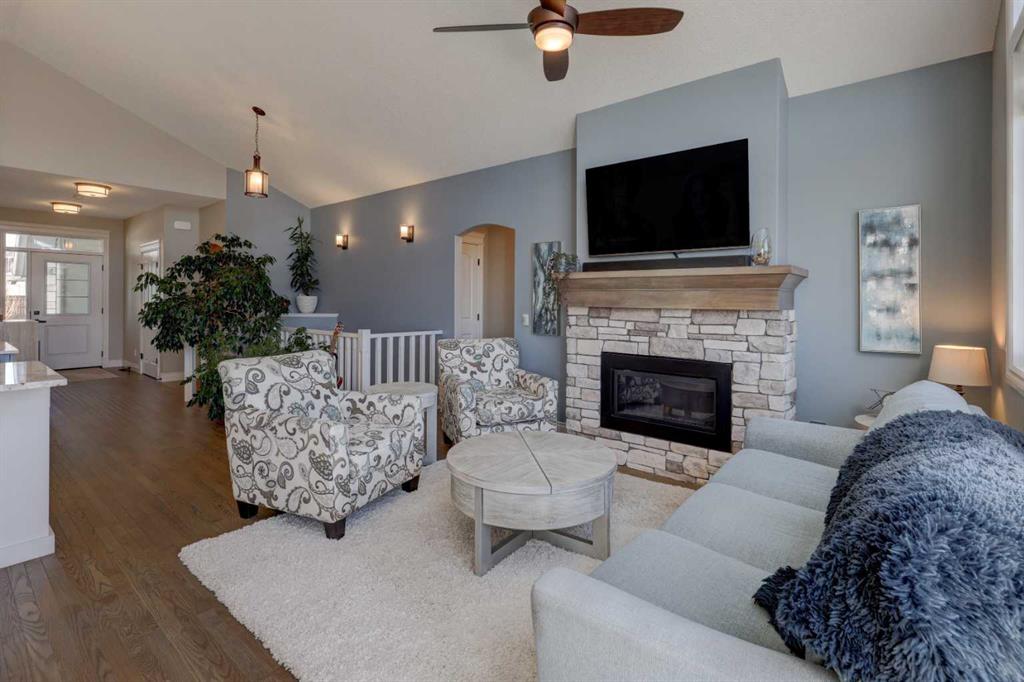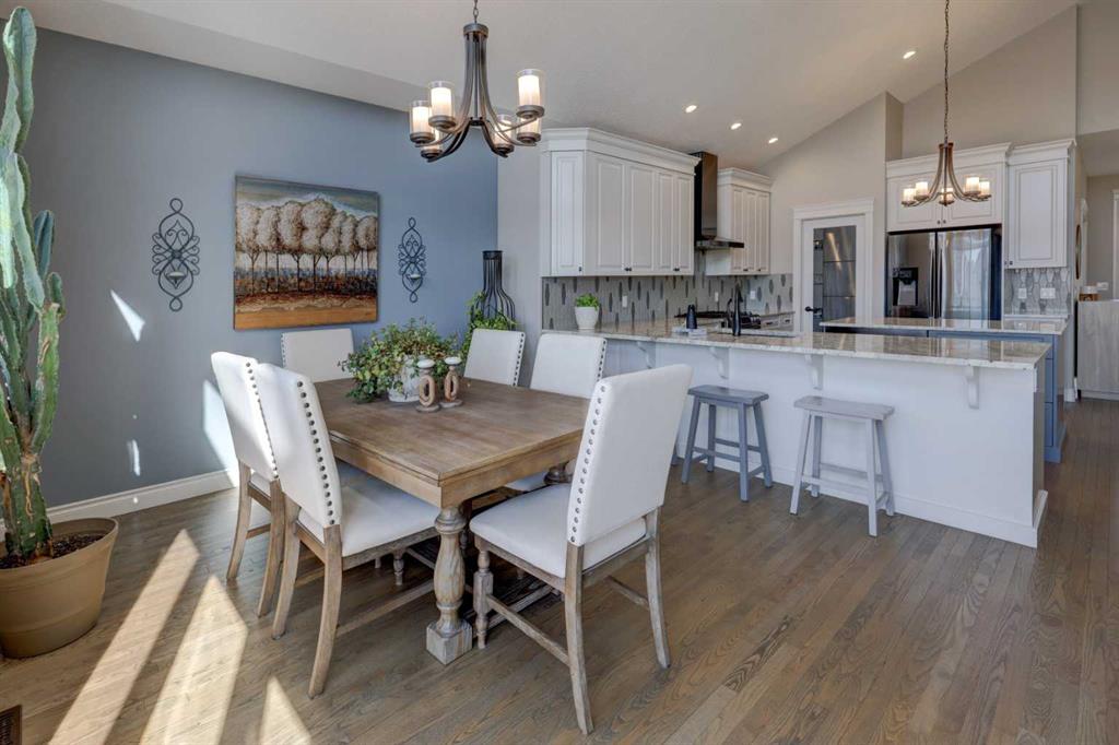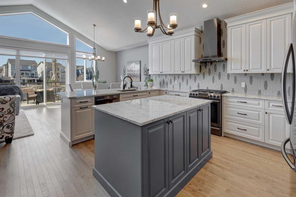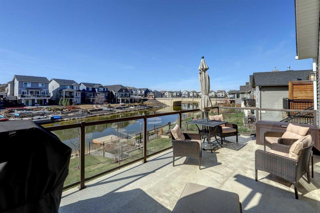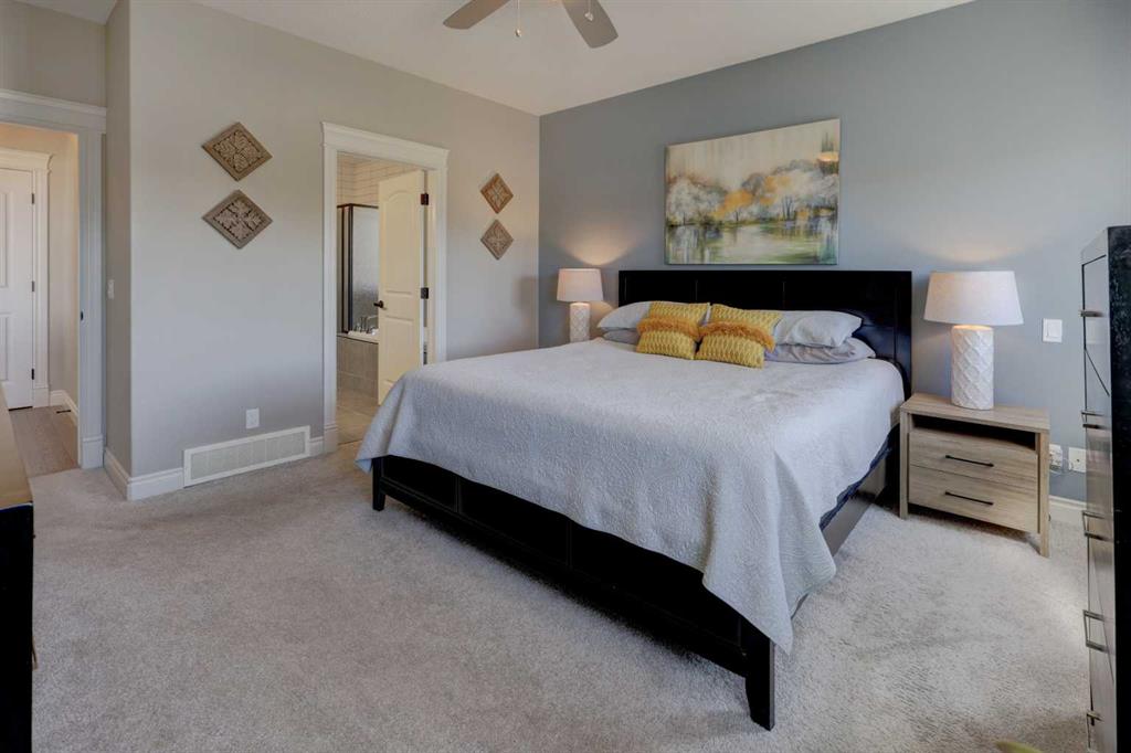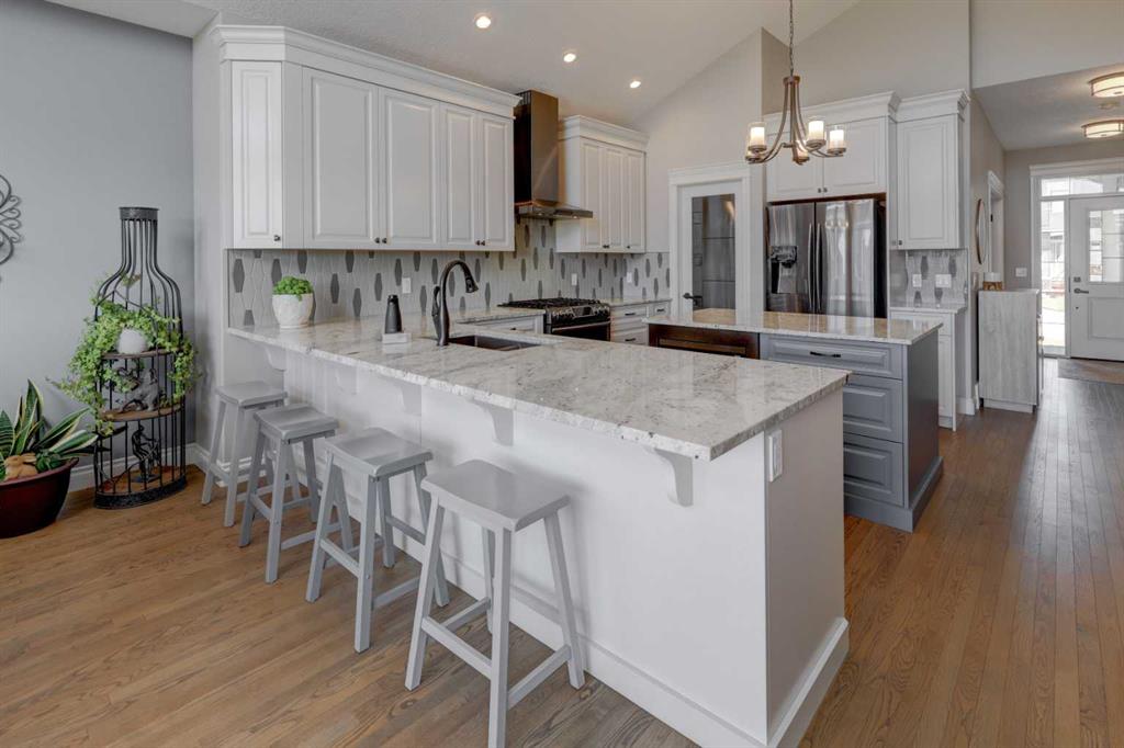 Welcome to this custom built McKee bungalow, proudly offered by the original owner and perfectly positioned on the waterfront in Bayside Estates. Featuring a triple tandem heated garage, this home offers exceptional space for all your vehicles, tools and toys. Step inside to a bright and inviting main floor, showcasing rich hardwood flooring and 9 foot ceilings throughout, complemented by central air conditioning to keep you comfortable year round.. Just off the entrance, a dedicated home office provides the ideal space for remote work or quiet study. As you move further in, the chef-inspired kitchen impresses with custom colors, including cream cabinetry, Black stainless steel appliances, granite countertops with a breakfast bar and a walk-in pantry with an elegant French door. The heart of the home is highlighted by soaring vaulted ceilings and stunning south-facing windows that flood the dining and living areas with natural light. A cozy fireplace creates the perfect ambiance for relaxing evenings. The spacious primary retreat offers a true escape, complete with a luxurious 5 piece ensuite featuring a soaker tub, separate shower, dual vanities and a walk in closet. Step out from the living room onto the expansive upper deck, finished with durable Duradek, where you can take in peaceful waterfront views. A convenient 2-piece bathroom and main floor laundry complete this level. Downstairs, the fully developed walkout basement is designed for entertaining, featuring 9 foot ceilings and a massive recreation and games area with a second fireplace. A custom-built wet bar and kitchenette add both function and flair. This level also includes two additional bedrooms and a 4-piece bathroom. Outside, your private backyard oasis awaits—complete with a concrete patio and direct water access. Whether you're considering a future dock or simply enjoying the setting, this space is perfect for morning coffee or unwinding with a glass of wine in the evening. Located just a short walk to Nose Creek School (K–4) and close to parks, playgrounds, sports fields, shopping, restaurants, and everyday amenities, this home offers an unbeatable lifestyle. Waterfront. Luxury. Location. This one truly has it all.