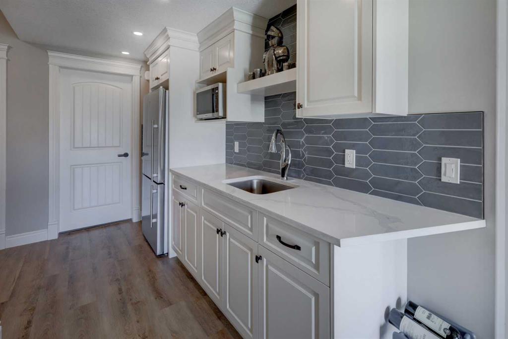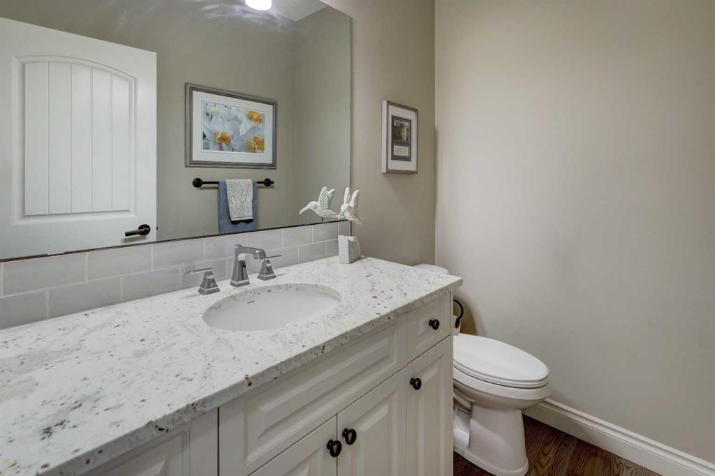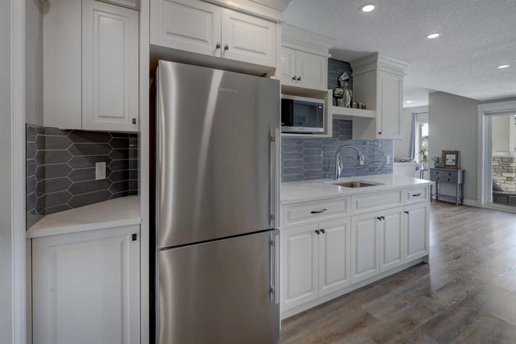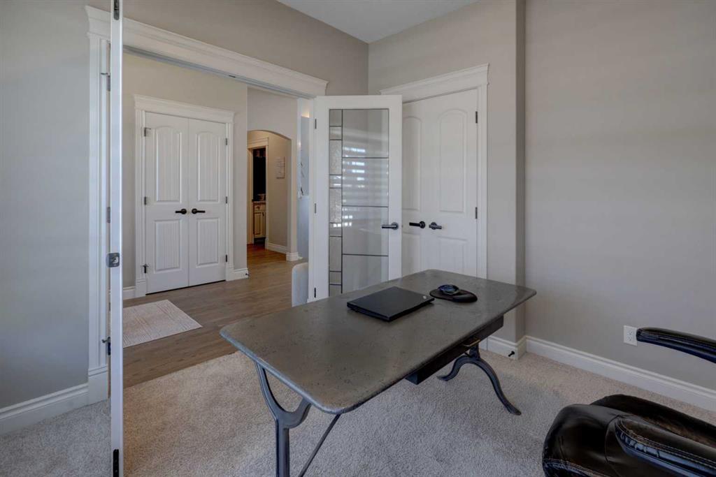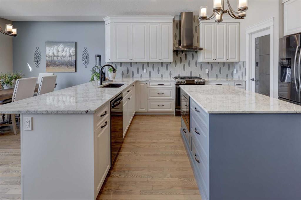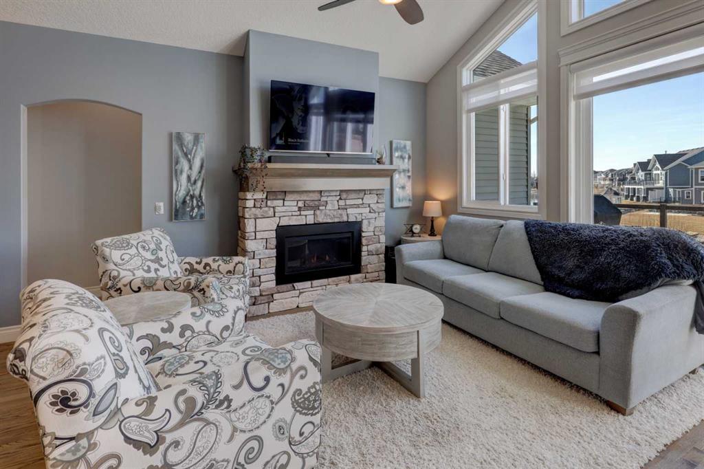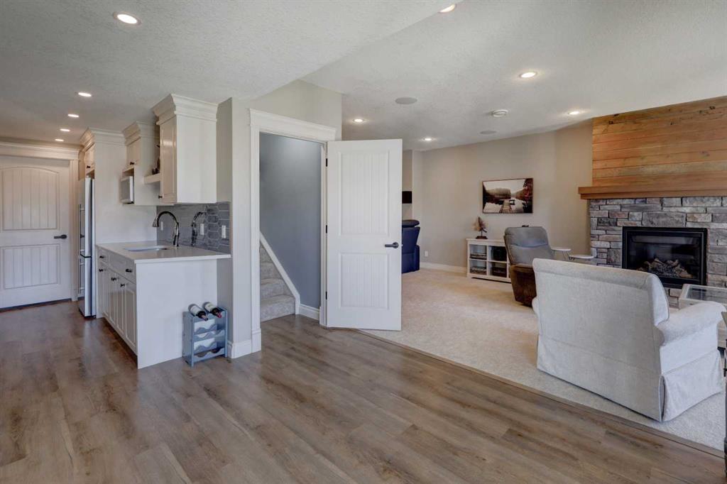 Welcome to this custom built McKee bungalow, proudly offered by the original owner and perfectly positioned on the waterfront in Bayside Estates. Featuring a triple tandem heated garage, this home offers exceptional space for all your vehicles, tools and toys. Step inside to a bright and inviting main floor, showcasing rich hardwood flooring and 9 foot ceilings throughout, complemented by central air conditioning to keep you comfortable year round.. Just off the entrance, a dedicated home office provides the ideal space for remote work or quiet study. As you move further in, the chef-inspired kitchen impresses with custom colors, including cream cabinetry, Black stainless steel appliances, granite countertops with a breakfast bar and a walk-in pantry with an elegant French door. The heart of the home is highlighted by soaring vaulted ceilings and stunning south-facing windows that flood the dining and living areas with natural light. A cozy fireplace creates the perfect ambiance for relaxing evenings. The spacious primary retreat offers a true escape, complete with a luxurious 5 piece ensuite featuring a soaker tub, separate shower, dual vanities and a walk in closet. Step out from the living room onto the expansive upper deck, finished with durable Duradek, where you can take in peaceful waterfront views. A convenient 2-piece bathroom and main floor laundry complete this level. Downstairs, the fully developed walkout basement is designed for entertaining, featuring 9 foot ceilings and a massive recreation and games area with a second fireplace. A custom-built wet bar and kitchenette add both function and flair. This level also includes two additional bedrooms and a 4-piece bathroom. Outside, your private backyard oasis awaits—complete with a concrete patio and direct water access. Whether you're considering a future dock or simply enjoying the setting, this space is perfect for morning coffee or unwinding with a glass of wine in the evening. Located just a short walk to Nose Creek School (K–4) and close to parks, playgrounds, sports fields, shopping, restaurants, and everyday amenities, this home offers an unbeatable lifestyle. Waterfront. Luxury. Location. This one truly has it all.