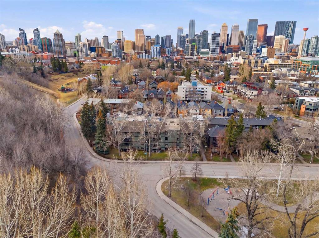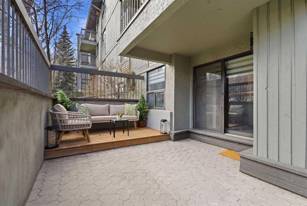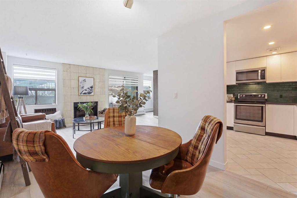 1 BEDROOM + DEN | 1 BATHROOM | 956 SQFT | MAIN FLOOR UNIT | LARGE SOUTH FACING PATIO | ASSIGNED PARKING | PRIME LOCATION | Welcome to this spacious and well-designed main floor condo in the highly sought-after community of Cliff Bungalow, offering 956 sqft of comfortable living space with 1 bedroom plus a den and 1 full bathroom. Perfectly located just steps from the Elbow River pathways, 4th Street shops and restaurants, and everyday amenities, this home offers the ideal inner-city lifestyle. As you enter the home, you are welcomed by a functional layout with durable and stylish vinyl plank flooring, a convenient storage room and in-suite laundry. The bright and open living space features a large living room with a cozy wood-burning fireplace with surround tile, creating the perfect place to relax or unwind. The adjoining dining area flows into the kitchen, which offers ample counter space, modern appliances, and room for a kitchen table, making it both practical and inviting. The primary bedroom is generously sized and features a large walk-in closet, while the nearby 5-piece bathroom includes dual vanities, a soaker tub, and a linen closet for added convenience. The den provides excellent flexibility and can easily be used as a home office, guest space, or converted into a second bedroom. One of the standout features of this home is the expansive south-facing patio, offering plenty of space for outdoor furniture, a BBQ, and even a garden area to create your own private oasis. This unit received a refresh in 2023 with new vinyl plank flooring, fully updated kitchen, new modern appliances, and new washer and dryer combo. Enjoy your own assigned parking stall and additional storage unit. Located across from a playground and off-leash dog park, and within walking distance to Safeway, transit, schools, and the vibrant Mission district, this home offers unbeatable convenience and lifestyle. Perfect as your first home or for a growing investment portfolio, this is a fantastic opportunity. Book your showing today!