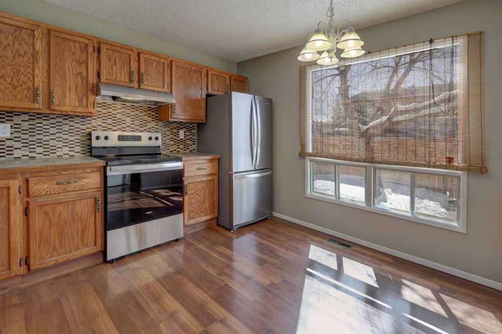 Welcome to this charming two-storey home in the peaceful, established community of MacEwan, ideally situated on a spacious corner lot with mature trees, beautiful landscaping, and a sunny south-facing backyard. Enjoy the extra outdoor space, along with the convenience of two dedicated parking stalls. Inside, this well-maintained home offers three comfortable bedrooms and a full bathroom upstairs, including a generous primary suite with dual closets. The main floor features an updated eat-in kitchen with-new appliances (2025) and a convenient half bath, while recent upgrades include a newer furnace (2022) and a new roof (2025). Perfectly located just minutes from a local daycare and elementary school, with quick access to 14th Street, Deerfoot Trail, and Stoney Trail, plus direct bus routes to downtown, this home blends suburban tranquility with everyday convenience.
