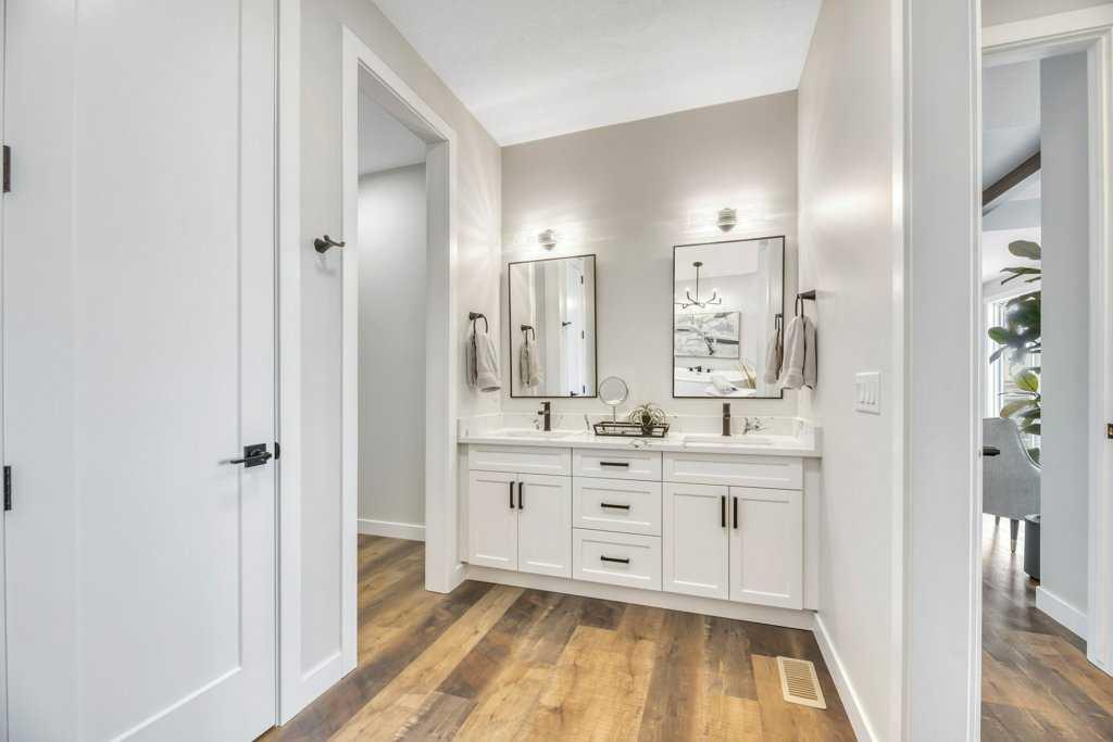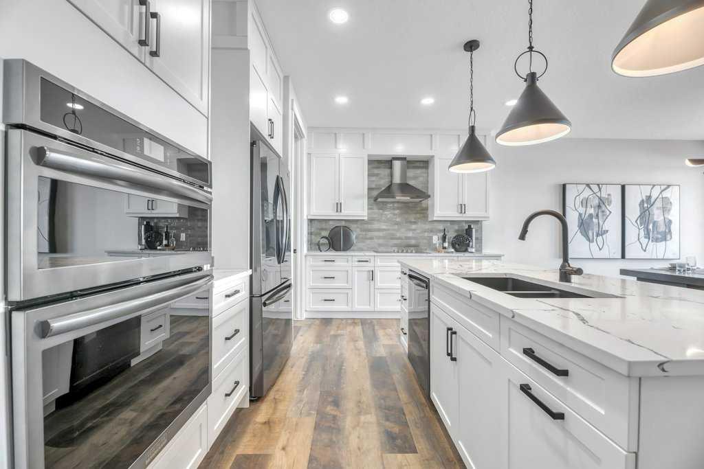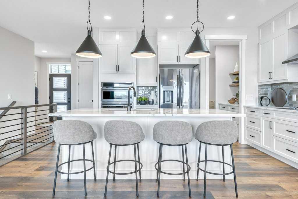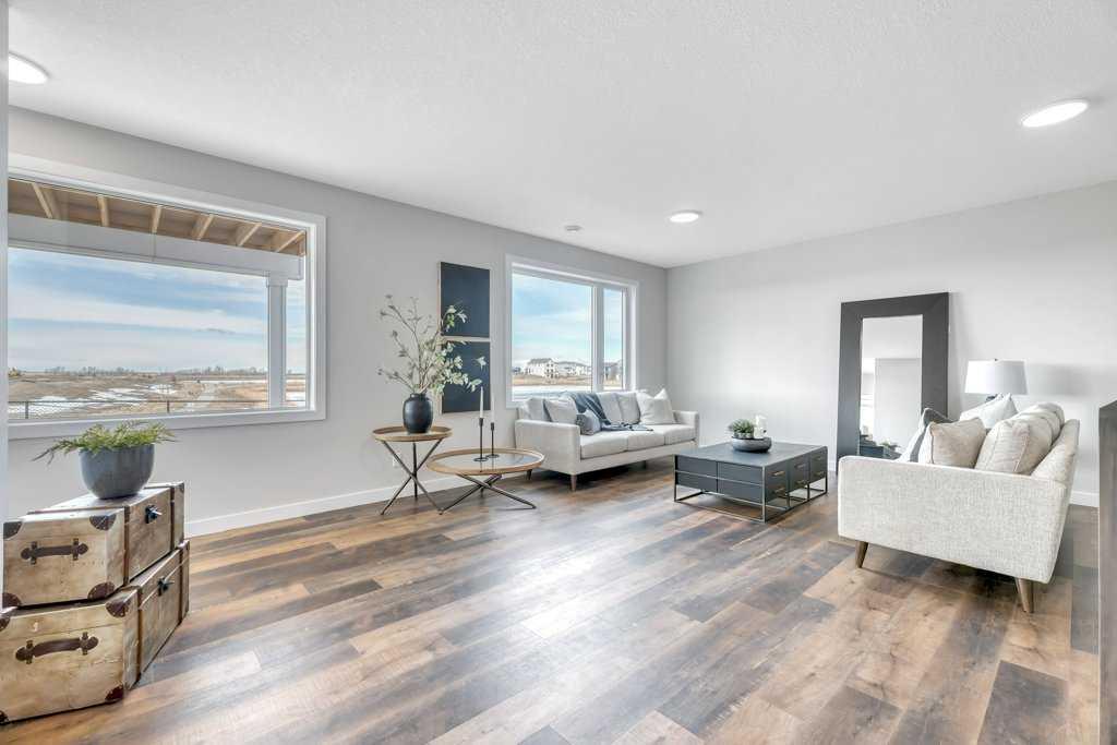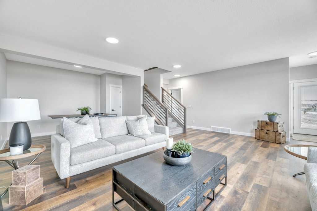 WELCOME HOME--- Thoughtfully designed & Timeless! Check out this CUSTOM BUILT FULLY FINISHED Bungalow Trilogy show home! This home is ready for a family to make it home! From the moment you walk in you are welcomed by all the natural light, and all the views that Lakewood has to offer! Open concept kitchen with tonnes of storage and massive island open to the living room and dining room. Perfect for entertaining! All the details are what take this home to the next level--> CUSTOM there was nothing missed in this curated design from top to bottom! Dining room walks onto the large maintenance free deck that will steal your heart with the views of the pond and the sunsets! The kitchen,dining and living room will capture your attention with the well thought out lighting, and the custom fireplace and the BEAMS!!!- the beams in the living room add extra character and thought! The main floor is complete with walk through pantry, main floor laundry, a huge back porch perfect for busy families! The front room can be used an office or another bedroom. The Primary suite is an oasis - big windows, and a spa like ensuite, and huge walk in closet! Downstairs will not disappoint, 2 huge bedrooms another full bath and a massive family room and games are that walk out to the concrete pad with access to the back yard! Home is complete with Ac! Vinyl plank flooring throughout- upgrades everywhere! Call you Realtor t book your private showing!