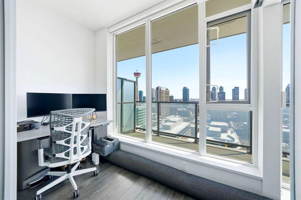 Welcome to this thoughtfully designed layout, which is among the most spacious 1-bedroom and office floor plans available in Park Point! The bright, open-concept living space is filled with natural light from expansive windows, creating a warm and inviting atmosphere. The sleek kitchen is both stylish and functional, featuring granite countertops and backsplash, high-end stainless steel appliances, and generous storage. The unit includes a generously sized bedroom along with a versatile den, ideal for a home office or additional living space. Step out onto your private balcony and enjoy stunning city views. Residents of Park Point enjoy access to an impressive array of amenities, including a fully equipped fitness centre, spa-inspired facilities with a steam room and infrared sauna, guest suites, concierge service, and overnight security. Additional highlights include a beautifully designed residents’ lounge with kitchen and entertainment space, a community party room, and an outdoor terrace complete with BBQs, dining areas, and a firepit—perfect for hosting or relaxing. The building also features a Zen garden and a dedicated pet run with seating areas. Perfectly positioned across from Central Memorial Park in the heart of Calgary, this exceptional condo places you steps from some of the city’s best shops, dining, and entertainment.