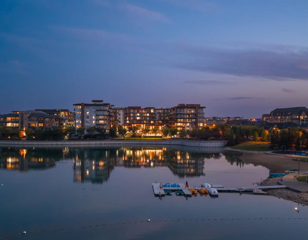 There’s something special about coming home to a place that feels like a retreat where life slows down just enough to be enjoyed! Welcome to Ebony Apartments in the heart of Mahogany, one of Calgary’s most sought after lake communities. Here, life feels a little slower, a little more intentional, and a lot more connected. Imagine waking up and choosing how your day unfolds. A peaceful walk along scenic pathways coffee in hand or a morning jog past natural wetlands, and ending your evenings watching the sunset by the lake. With 63 acres of pristine lake water, 21 acres of private beach, and year round activities from summer paddle boarding to winter skating Mahogany invites you to embrace every season. The community offers a lifestyle that feels like a getaway, every single day. This is more than a condo it’s a community where neighbours become familiar faces and everyday moments turn into lasting memories. Perched on the third floor, this beautifully maintained 2 beds & 1 bath unit offers 572 sqft of bright, functional living. The moment you step inside, you’re greeted by natural light that fills the space, creating an inviting and uplifting atmosphere. The kitchen is both stylish and practical, complete with stainless steel appliances and a generous breakfast bar perfect for slow mornings with coffee or casual evenings spent catching up with friends. The adjacent living room flows seamlessly to your private balcony through sliding glass doors, creating an ideal spot to unwind and take in the day. Tucked away for added privacy, the primary bedroom offers a peaceful retreat, while the versatile second bedroom or den is complete with a Murphy bed that effortlessly adapts to your lifestyle, whether as a guest space, home office, or both. In-suite laundry and additional storage space provides everyday convenience, while the building’s private gym adds an extra layer to the lifestyle making it easy to stay active without ever leaving home. Whether you’re stepping into homeownership, simplifying your lifestyle, or investing in a vibrant community, this home offers something more meaningful—a place where comfort, connection, and a sense of escape come together. Just minutes from your door, Mahogany Village Market offers everything from daily essentials to local cafés, while an evening at Chairman’s Steakhouse adds a touch of indulgence close to home. While Mahogany stands out for the cohesive design and thoughtfully planned community feel, it’s the lifestyle here that truly captures your heart!
