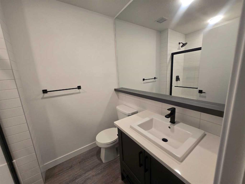 Inside, you’ll find the convenience of in-suite laundry with added storage, a well-appointed three-piece bathroom, and warm, sophisticated flooring throughout. The generously sized bedroom boasts large windows and a walk-in closet, providing a calm and comfortable escape.