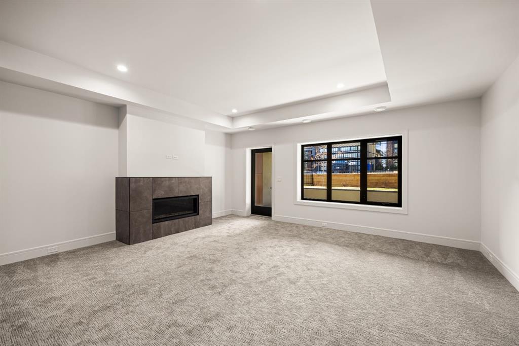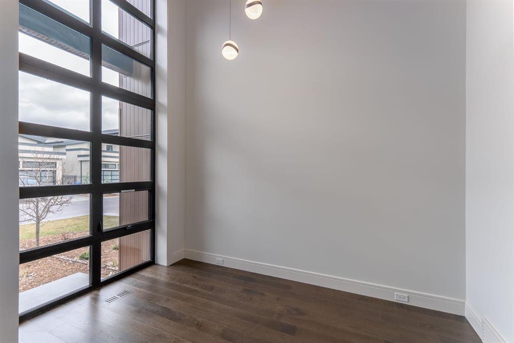 The fully developed lower level, with nine-foot ceilings and a second fireplace, is engineered for lifestyle flexibility and hosting. A generous recreation area features a designer wet bar with custom glossy millwork and dual refrigeration, while two additional bedrooms provide ideal accommodations for guests or teens. A flex room offers the perfect footprint for a home gym or hobby space. The spacious lower patio leads directly to the fenced, private west facing yard. The oversized double garage boasts a heated slab, transom windows and ceiling height to accommodate a car lift. Built to an exceptional standard with full Insulated Concrete Form (ICF) construction to the soffit line and triple-glazed windows, this home offers superior sound attenuation and thermal efficiency. Located just minutes from Aspen Landing and the Rocky Mountains, this villa offers an unparalleled blend of privacy and convenience for the next chapter of your life.