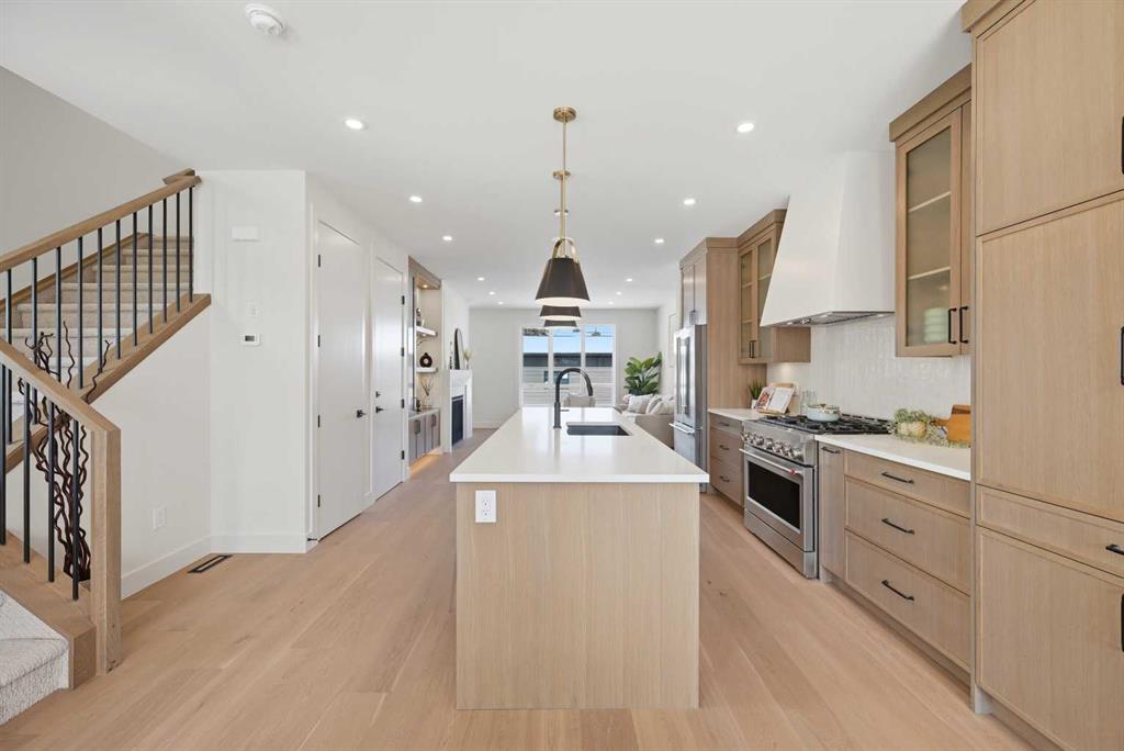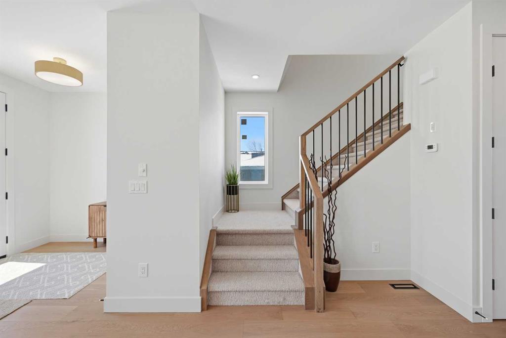 SOLID Built with Luxury in Mind on a quiet street - Another project from Sarai Custom Homes -A Builder you can trust. Located in the vibrant community of Bowness, this semi-detached home blends modern design with practical living and a prime inner-city lifestyle close to parks, schools, and everyday amenities. The main floor features a bright, open layout with a stylish OAK kitchen offering full-height cabinetry, a large island, and thoughtful storage, flowing into a warm living room anchored by a gas fireplace and large windows that fill the space with natural light. A functional mudroom, powder room, and a lot of storage for daily convenience.