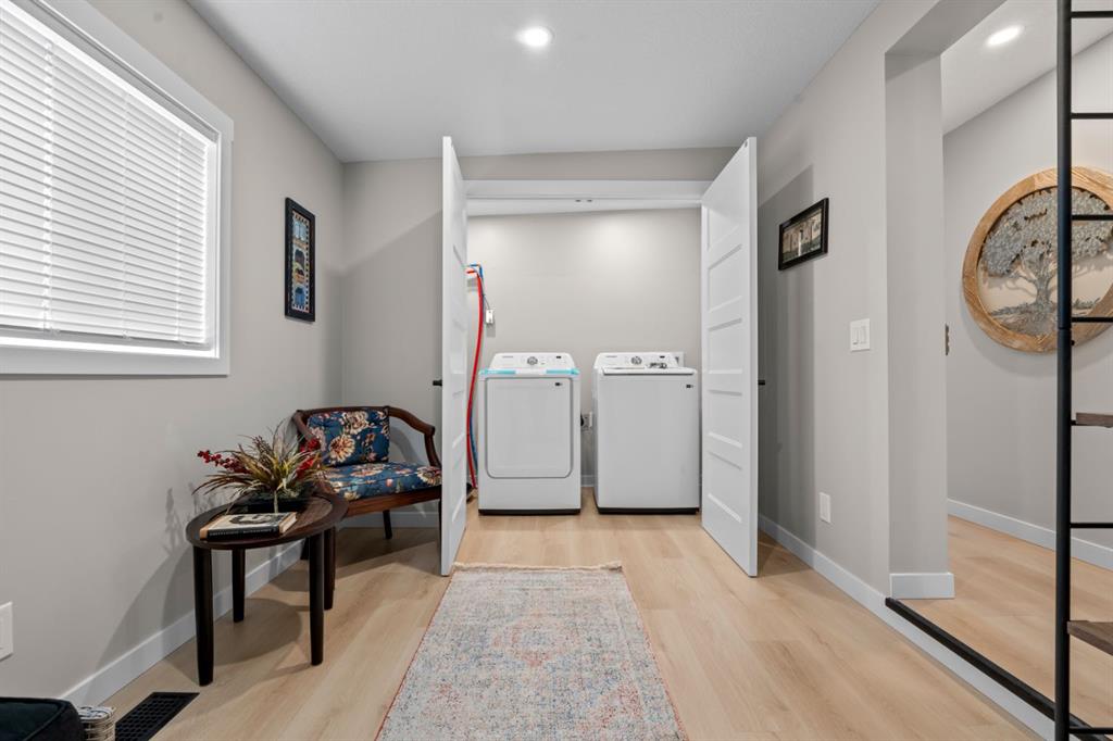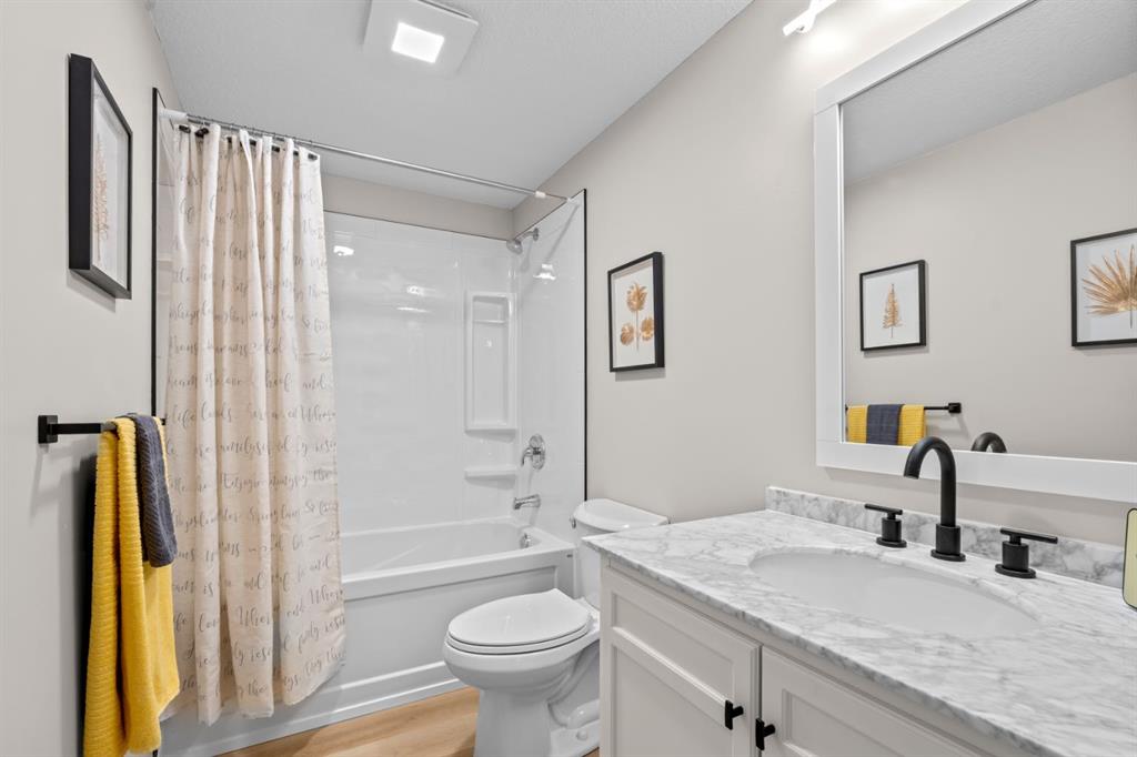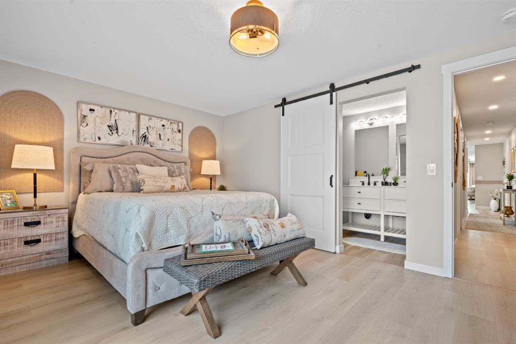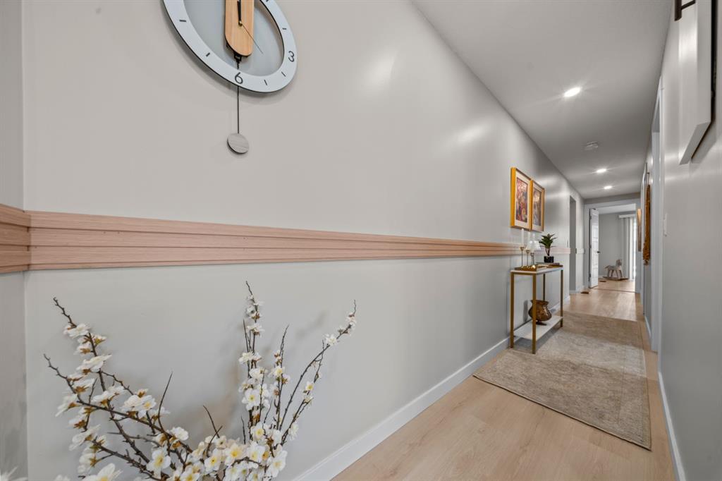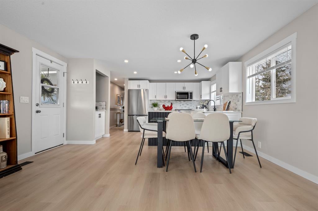 Welcome to this fully renovated mobile home in Watergrove the premiere 45+ Park in NW Calgary, offering a beautifully landscaped environment, green spaces and walking paths, and a well maintained community. This home is in a quiet cul de sac, steps to a walking path, has a large carport, and has been completely renovated with an open concept, redesigned floor plan, two bedrooms, two bathrooms, walk-in closet, and separate laundry and mudroom, living room, dining area and large kitchen. Inside is bright and spacious, has a modern aesthetic with laminate flooring throughout, fully drywalled interior, knockdown ceiling, pot lights, new interior and exterior doors, new baseboard and casing, and two new bathrooms were constructed from one, providing new tub, shower, toilets, vanities and fixtures. The big ticket items have been done, which includes a new furnace, new plumbing with PEX waterlines, new windows and doors, exterior siding, front deck with Acacia tile decking, and new back deck off the primary bedroom. The all new kitchen has shaker style cabinets, quartz countertop, separate coffee bar, new stainless steel appliances including a slide-in induction stove, tile backsplash, black granite composite sink, and a large island offering extra workspace and storage. The ample dining area and spacious living room (with a wood-burning fireplace), provides space for comfortable daily living, with large windows bringing in lots of light. The primary bedroom has new patio doors leading out to the deck, 4 pce ensuite with walk-in shower and double sink vanity, and a large walk-in closet with built-in shelving. The second bedroom is a good size and could be used as an office/flex room. The laundry room is conveniently situated in the mud room with double doors to close it off when not in use. The mudroom also has an entry from the front deck. The fabulous clubhouse at Watergrove offers an outdoor pool, dry sauna, indoor hot tub, recreation room/party room, exercise room, games room with billiard tables , lending library, and enough activities to keep you busy every day. Watergrove has many walking paths throughout the Park, and the community of Arbour Lake has almost every amenity imaginable. Lot rent of $895 includes water, sewer, garbage pick up and snow removal. Lease approval is required, and pets are welcome with approval.