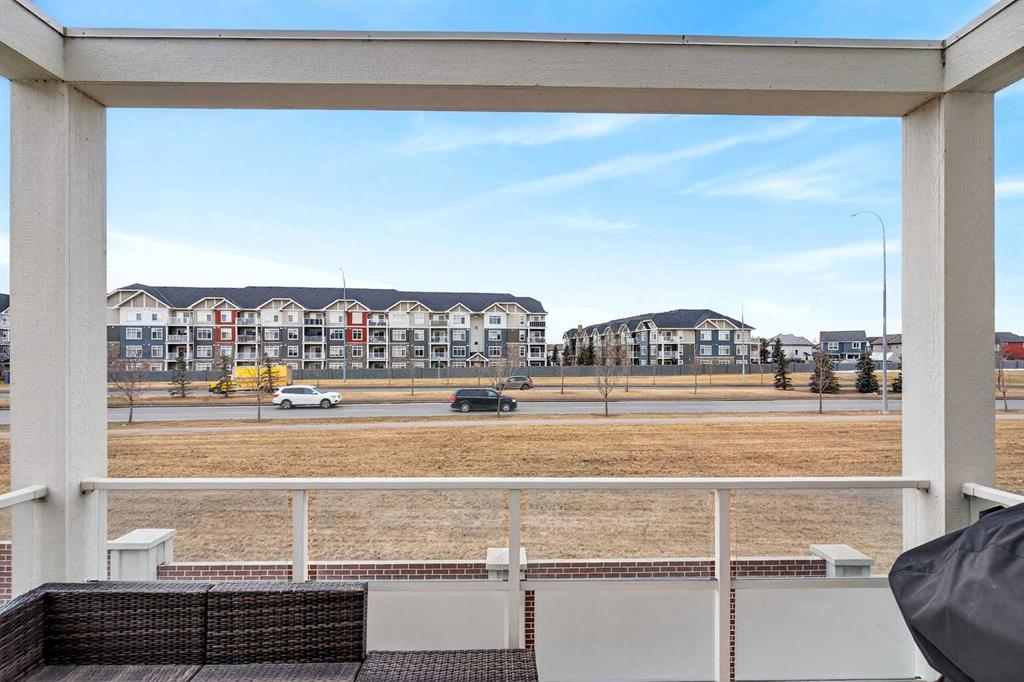SHOW HOME upgrades - END-UNIT 1,380 sq. ft., this bright townhouse in Redstone features 2 bedrooms, 2.5 bathrooms, with unobstructed Mountain VIEWS off the dining room balcony & master bedroom, a main-level office/den/gym/ flex room, and an extra-large single attached garage. Enjoy bright sunshine throughout the entire home, the large windows in the primary bedroom. Added privacy bonus: NO neighbours directly facing your front door.