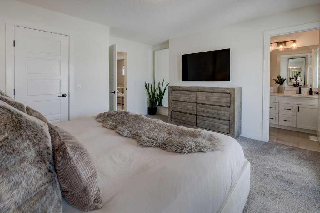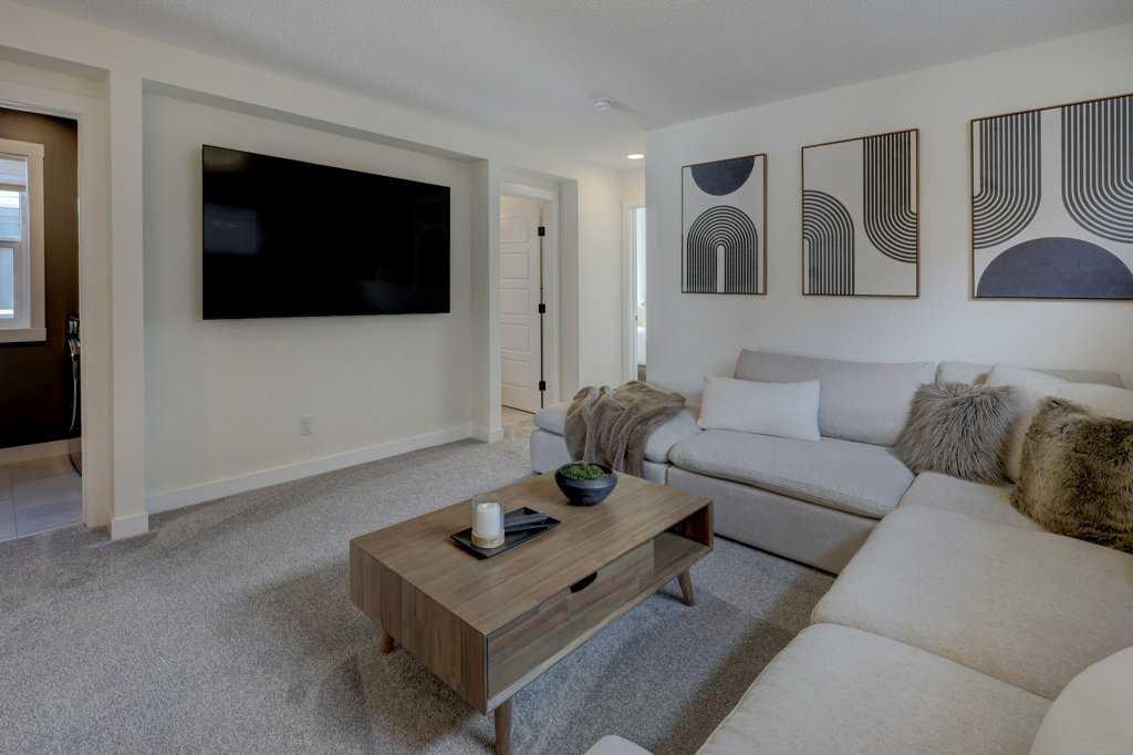 Upstairs, a centrally located bonus room welcomes you from the stairs and creates separation between spaces, adding flexibility for family life. The primary suite offers a calm retreat with a walk in closet and a well finished ensuite featuring dual sinks, quartz counters, tile flooring, and an oversized tiled shower. Step out directly to your 5x15 balcony. Two additional bedrooms, a full bathroom, and an upper level laundry room complete the second floor.