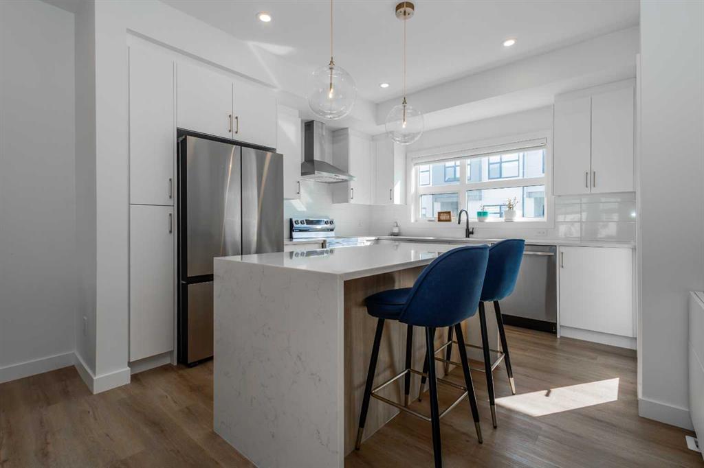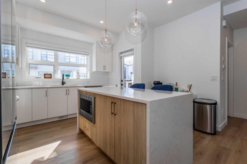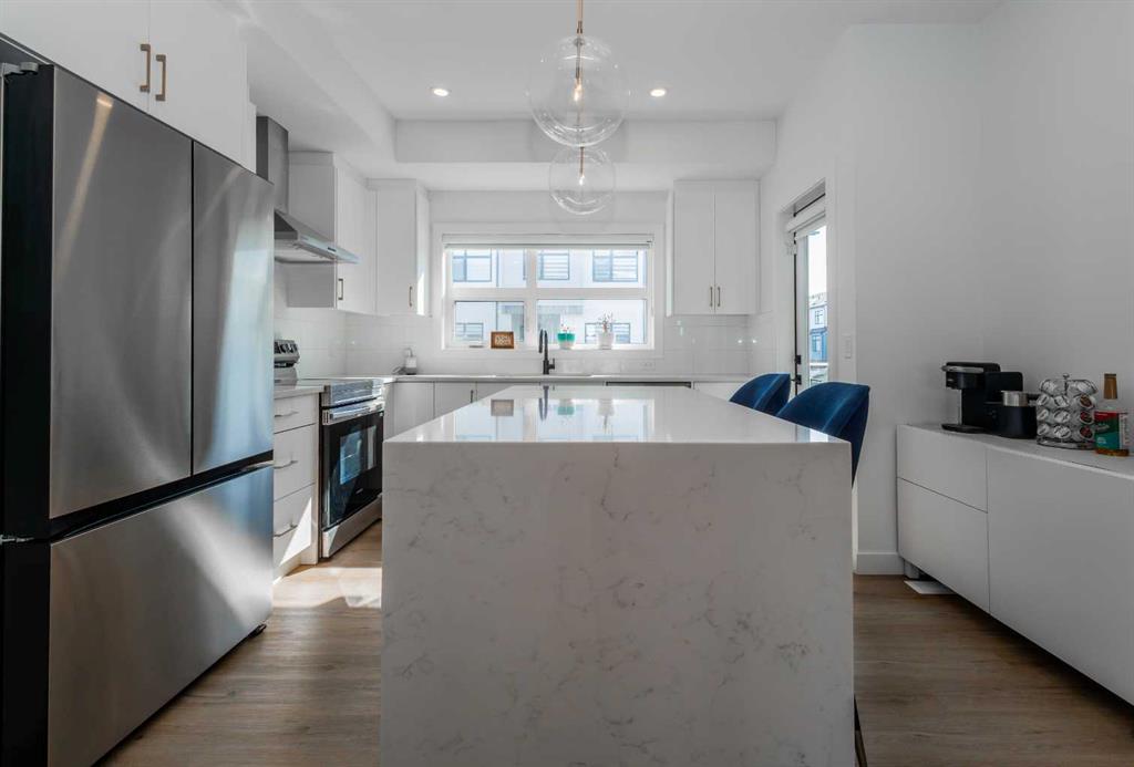 Ascending to the main level, you are greeted by a sophisticated open-concept layout that seamlessly blends the living, dining, and kitchen areas. This space is enhanced by high-end finishes and premium appliances, creating a perfect setting for both entertaining and daily living. Step out onto the balcony to enjoy a peaceful morning coffee or unwind with an evening barbecue.