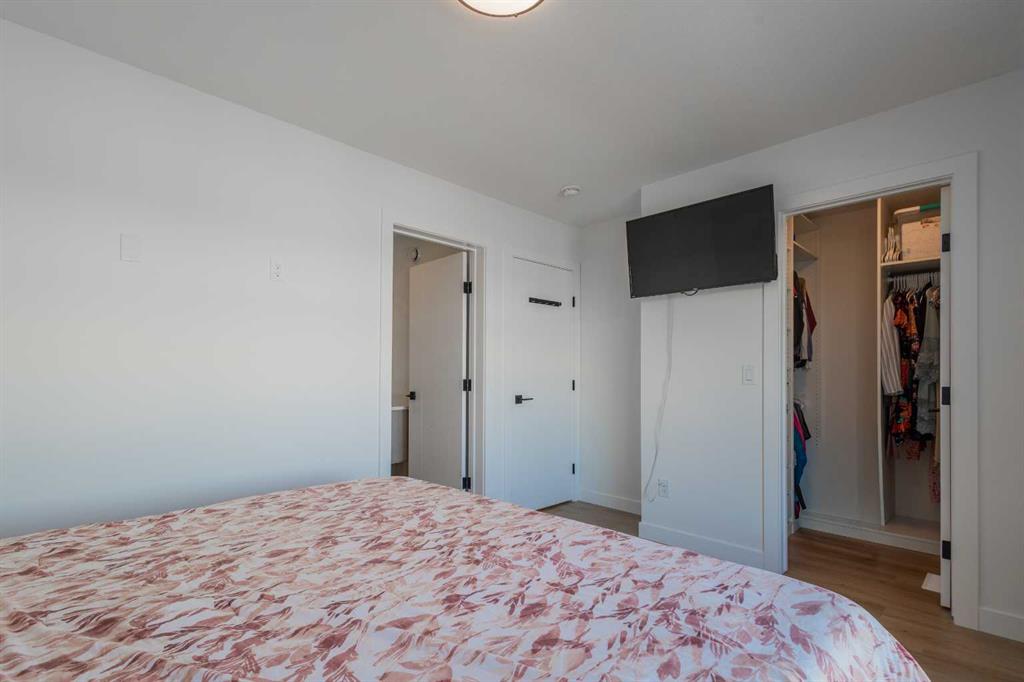 The upper level hosts a generously sized primary bedroom, complete with a walk-in closet featuring built-ins and a beautifully designed ensuite. Two additional well-proportioned bedrooms, a full bathroom, and a conveniently located laundry area complete this floor.