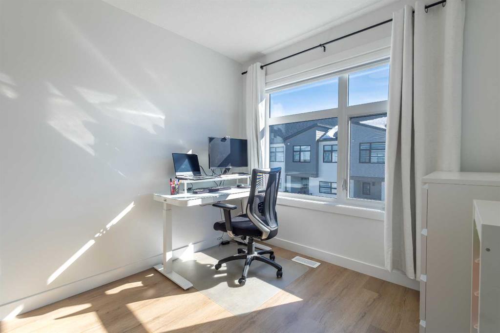 The entry level features a thoughtfully designed foyer, complemented by a private, enclosed office—ideal for working from home—alongside a spacious double attached garage.