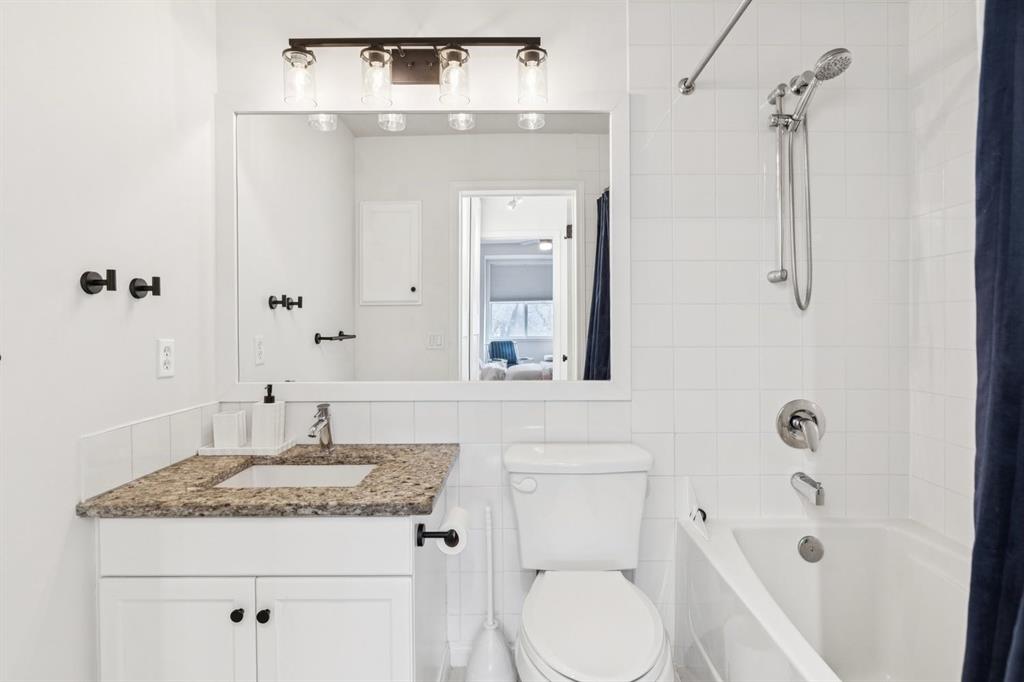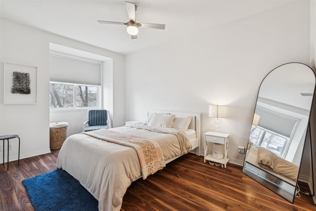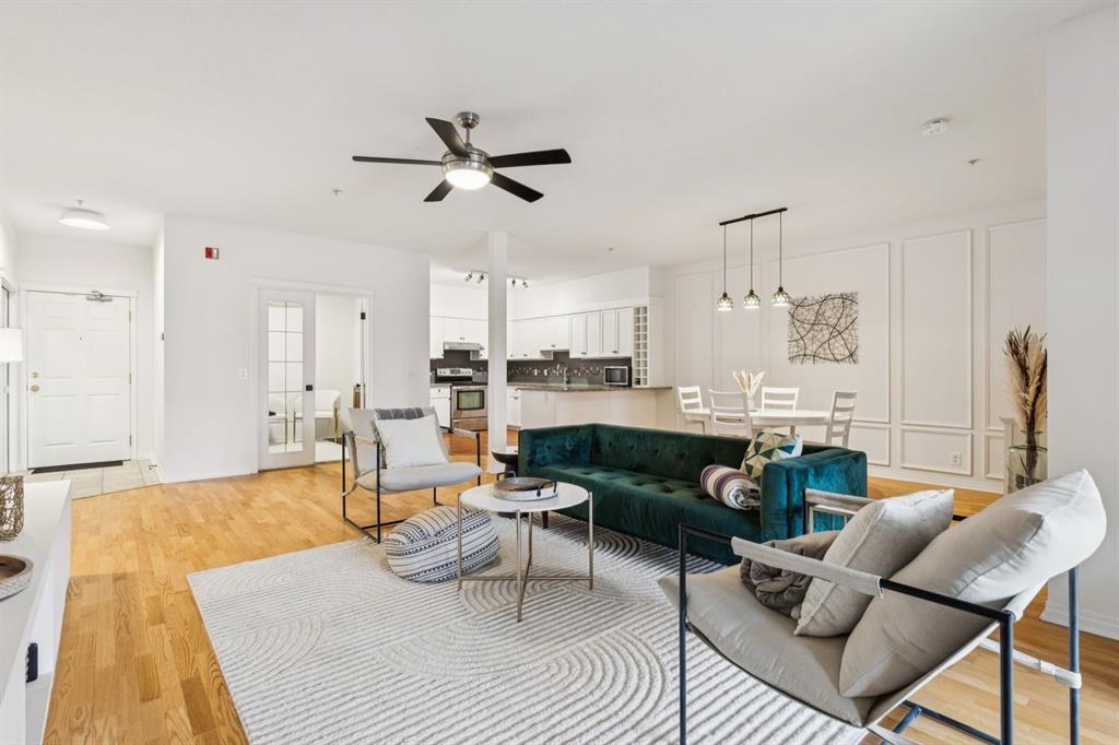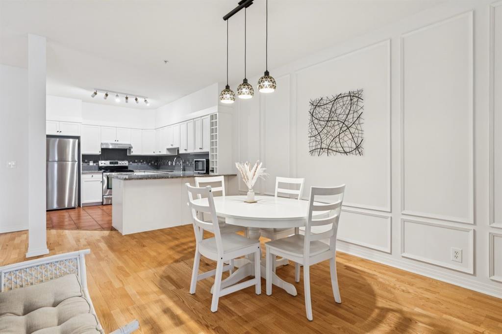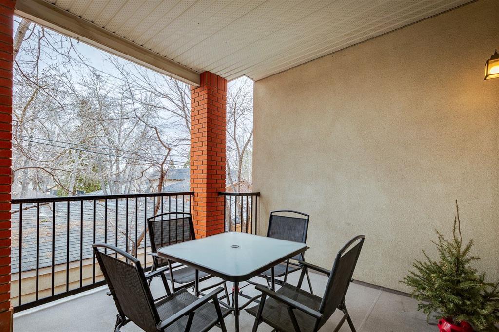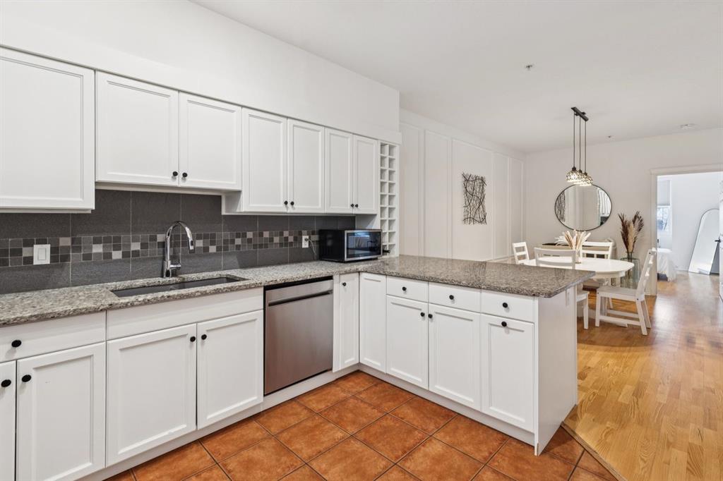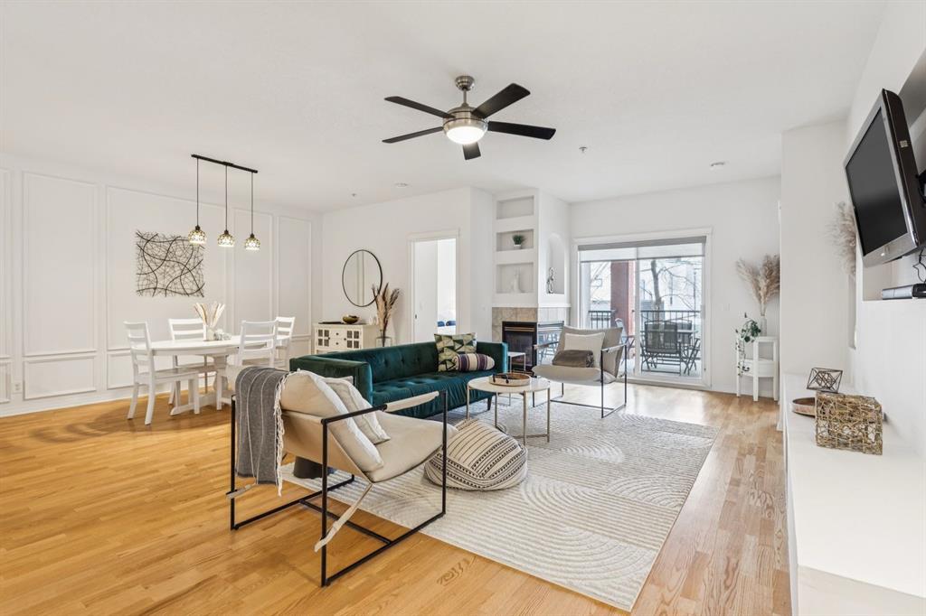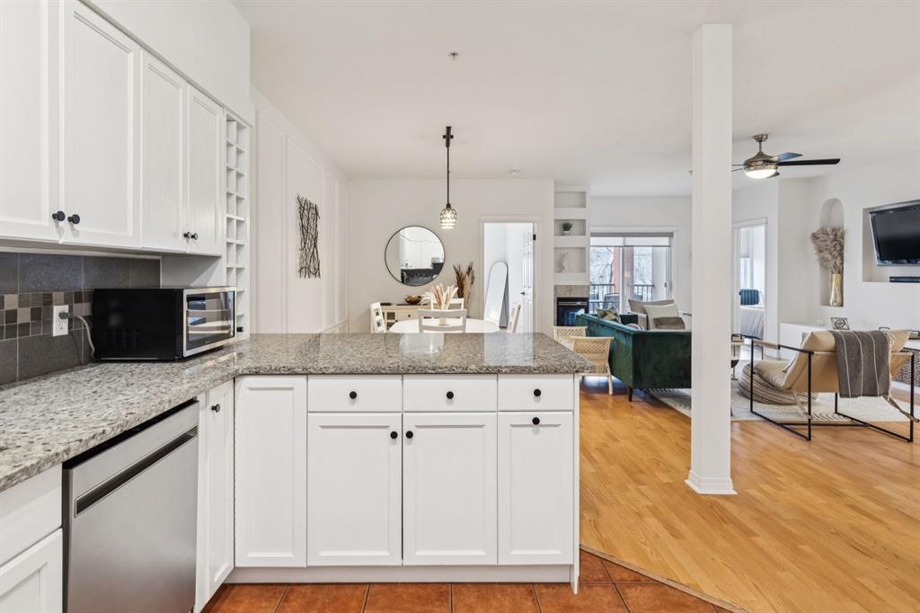 A thoughtfully curated interior that feels both elevated and inviting in West Hillhurst. Welcome to your new home at The Manors, where timeless design meets modern comfort. This beautifully updated 1,287 sq ft condo offers 2 bedrooms, 2 full bathrooms plus a den, and titled underground parking. The open concept layout seamlessly connects the kitchen, dining, and living spaces, creating the perfect setting for everyday living and effortless entertaining. The living room is anchored by a cozy two sided gas fireplace, while a stunning custom feature wall with integrated built in shelving adds architectural interest and a calm, refined ambiance to the space. The kitchen has been tastefully refreshed with a new fridge and dishwasher, complementing the existing granite countertops. Fresh paint, along with updated hardware and lighting throughout, offers a clean and modern aesthetic. The adjacent dining area flows beautifully for hosting or quiet evenings at home, complete with a striking new light fixture. Retreat to the spacious primary bedroom, featuring a walk in closet and private ensuite. A generous second bedroom and versatile den provide flexible space for a home office, guests, or creative pursuits. Additional upgrades include built in closet systems and a stylishly refreshed laundry room with striking black and white vintage inspired tile flooring. Step outside to your private balcony, perfect for morning coffee, evening wine, or summer barbecues. This unit also includes in suite laundry, a titled underground heated parking stall, a dedicated storage space, and access to building amenities including a car wash bay. Ideally located close to shopping, restaurants, parks, and everyday conveniences, The Manors offers a balanced lifestyle of comfort, style, and accessibility. A move in ready opportunity with meaningful upgrades throughout, this is one you won’t want to miss. Love what you see? This unit can be sold partially furnished.