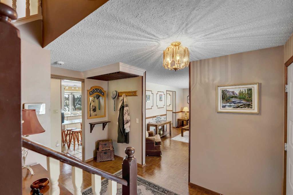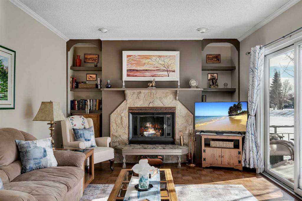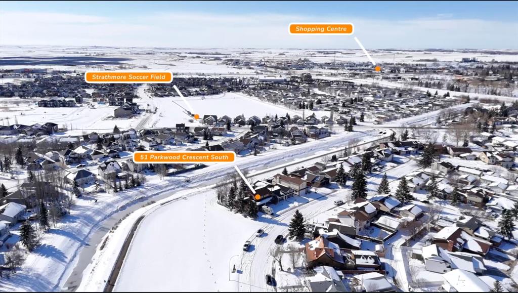BACKING AND SIDING ONTO GREENSPACE | CORNER LOT BACKING ONTO CANAL | They don’t build them like they used to! Welcome to 51 Parkwood Crescent, located in the family friendly town of Strathmore AB. This fully finished home offers a rare combination of privacy, space, and a beautiful private setting. From the moment you arrive the large covered front veranda sets the tone, with great curb appeal and a welcoming feel. Inside, the layout is spacious and functional with a centrally located kitchen featuring a breakfast bar, pantry, slide out drawers and plenty of workspace, all connecting nicely to both the formal dining room and large living room, flooded with natural light through the large front windows. A separate main floor family room with a stone faced fireplace adds another comfortable space to unwind, leading right through the patio doors to a very private, well treed and landscaped backyard backing directly onto the canal with a large deck space, perfect to enjoy those longer summer evenings with family and friends. Upstairs features 3 generously sized bedrooms including an oversized primary retreat with its own sitting area, walk in closet and large ensuite. The additional bedrooms also offer great space, including walk in storage and large closets and a second 5pc bathroom. Downstairs is fully finished with a rec room, games area, hobby space, office, and an additional bedroom with a non conforming window, along with a 2 piece bath and large laundry area complete with sink and folding table. The home carries a unique English country charm throughout, with well maintained hardwood flooring on the main and thoughtful details throughout. Set on a lot that backs and sides onto park, greenspace, and walking paths along the canal, this is a location that’s hard to replicate, offering both privacy and access to outdoor space right out your door. Available just in time to enjoy summer in your wonderful new home, please call today for private showing.