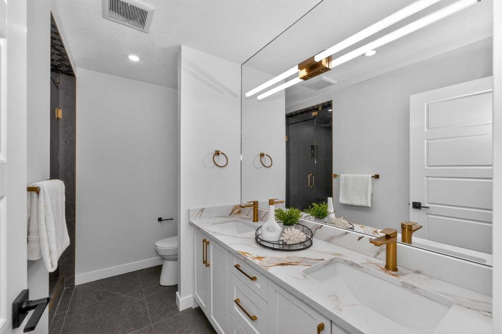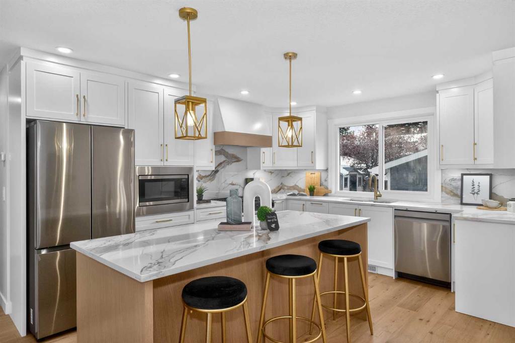 Experience a complete, Professionally Curated Renovation that elevates this home to a new level of luxury. Meticulously reimagined from top to bottom with 4 bedrooms and 4 bathrooms, every element has been crafted to deliver a refined, One-of-a-kind living experience. Resulting in a truly an exceptional luxury residence unlike any other that stands apart in Canyon Meadows. From the street, you’ll be captivated by the all-new Hardie board siding, New Custom-designed window package, New roof, New concrete all around, and an Oversized Garage— Curb appeal that is second to none. Walk through the front door and into a bespoke home with 2328 sqft of living space. You will be met with Engineered Hardwood Flooring, Heated Bathroom Tiles, and Brushed Gold finishes throughout. The interior is flooded with natural light, creating a bright and elegant atmosphere. The Kitchen is a stunning showcase of custom design and craftsmanship— Featuring Schenk Painted Custom Cabinetry with an Oak finished extra large island with storage, Pull-out Waste & Recycling, Under cabinet lighting, Quartz countertops, Samsung appliance package, and an Oak trimmed built-in hood range. Every detail has been thoughtfully considered and beautifully executed. The Master bedroom suite offers an elegant experience, complete with a spa-like Custom Rainfall Shower finished with Custom Tile work and Heated floors, The large Walk-in closet is complete with built-ins. The Second bedroom has ample storage and lots of natural light. The Main Bathroom includes tasteful finishes and a polished look with Heated tile flooring. Luxury touches continue into the Completely reimagined Basement which features another Master bedroom complete with its own separate Full Bathroom and a Second spacious Bedroom. The Signature Wet bar is complete with Cabinet lighting, wine racks, and glass built in shelves. The beautiful laundry room is finished with Quartz countertops and a sink for added convenience. The basement also features Massive windows, storage room, and a huge Main full Bathroom offering plenty of room for everyday comfort. Behind the new drywall, the home was re-engineered from the studs and up for modern luxury with new electrical and plumbing throughout and complete with all city permits. Also featuring a high-efficiency Rheem furnace and Rheem tankless hot water on demand, and air conditioning. If you’re looking for a Home that truly sets itself apart — Distinguished by Unmatched Design, Integrity, and Finish. — This Is Truly The One!