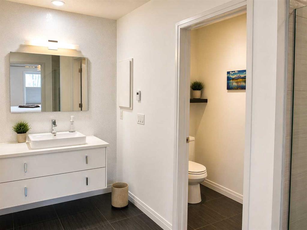 For the discerning buyer, this home offers a self-contained illegal suite on the lower level, complete with its own outdoor space. With 9' ceilings, an eat-in kitchen mirroring the upper-level design—featuring quartz counters, a waterfall island, cooktop, stove, dishwasher, over-the-range microwave, soft-close cabinetry, and ample prep space—this suite is both functional and stylish. Additionally, it includes a 3-piece bath, a cozy living area, a bedroom, and a full-size laundry pair within a walk-in closet.