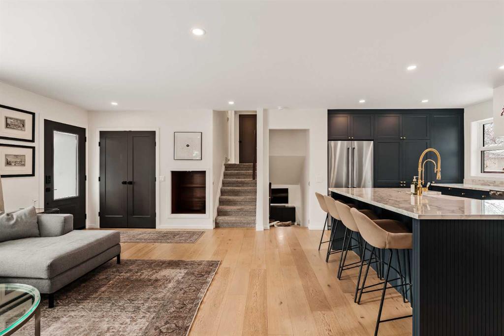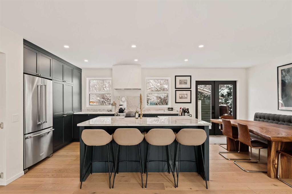 Welcome to a home that truly feels like home. Tucked away on a quiet cul-de-sac in one of Calgary’s most sought-after communities, this lovingly renovated 4-level split in Varsity has been cherished by the same family for the past eight years. Steps from the green space behind St. Vincent de Paul, Marion Carson Elementary, and F.E. Osborne Junior High, this 4-bedroom, 3-bath home offers over 2,100 sq. ft. of bright, beautifully curated living space. From the moment you walk in, you’ll notice the abundance of natural light - it’s the kind of house where you rarely need to turn on a light switch. The main floor welcomes you with an open living area, complete with a cozy gas fireplace, spacious dining room, and a thoughtfully designed kitchen featuring Hale Navy cabinetry by Marvel Cabinetry, brass hardware from Rejuvenation, a hidden appliance garage, and a coffee station that makes mornings feel extra special. Upstairs, you’ll find three bedrooms and a full bathroom, including a primary suite with its own 2-piece ensuite. Every bathroom has been beautifully updated with marble flooring, sage green cabinetry, and timeless tile work that blends luxury with warmth. On the lower level, a large family room invites game nights and movie marathons, alongside a stunning spa-like bathroom with a soaker tub and walk-in shower that feels like your own private retreat. The basement adds even more functional space with a laundry/mechanical area, tons of storage, a home office/den, and a fourth bedroom. Step outside to your sun-soaked backyard, where long summer evenings are spent around the fire pit or relaxing on the brick patio and elevated California concrete pad. There’s still plenty of lawn for kids and dogs to play and the sunsets here are truly something special. A double garage with upgraded lighting and electrical rounds out this perfect family home. This location is unbeatable - walk to schools, Varsity Ravine off-leash park, Bowmont Environmental Park, Market Mall, and University District, or quickly commute to the Foothills Hospital, Children’s Hospital, and the University of Calgary. The neighbours? Simply the best - the kind that make it hard to say goodbye. Lovingly maintained, beautifully updated, and ready for its next chapter -this Varsity gem is waiting to welcome its next family home. Notable updates include: new roof, R60 attic insulation, engineered hardwood flooring, fully renovated kitchen, flat ceilings installed, Hardie board siding (front of house), new front door, gas fireplace installed on main floor, new bathrooms (all three), new carpet, new garage door and opener, new dryer, new closet doors, "California" finished concrete patio, power upgrade for hot tub, furnace, gas line to BBQ added, new electrical panel.