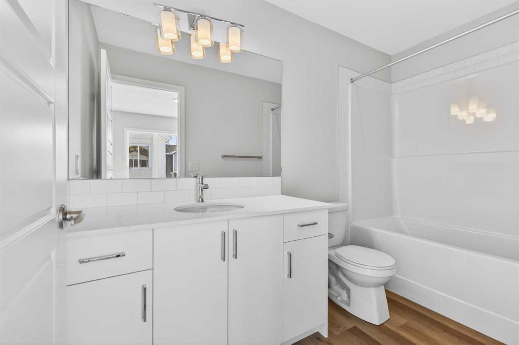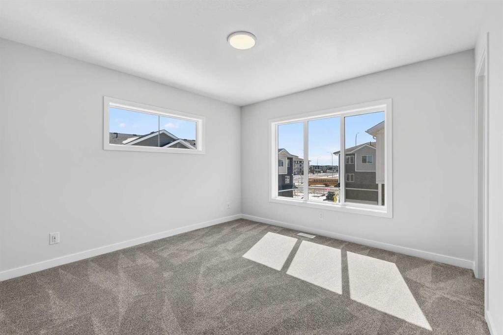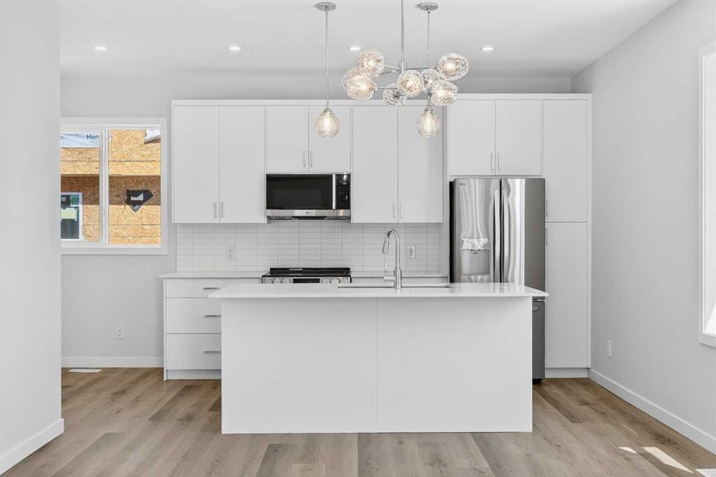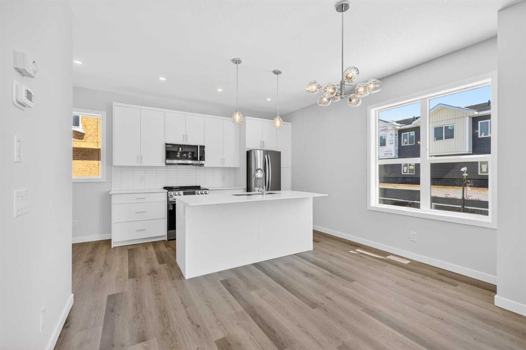 OPEN HOUSE on Saturday AND Sunday from 12-5pm. Please go to the Show Home located at 613-132 Red Embers Link NE for access. StreetSide proudly presents this exceptionally popular end-unit townhome, where expansive living areas meet modern comforts and sophisticated finishes. The thoughtfully designed floorplan features three spacious upper-level bedrooms and two and a half well appointed bathrooms, complemented by a versatile tech station on the main floor that is perfect for a workspace. The heart of the home is an inviting open-concept main floor, anchored by a large gourmet kitchen featuring a functional breakfast bar for casual dining. This bright living space transitions seamlessly to a private balcony, offering a perfect setting for outdoor relaxation. The interior showcases high end craftsmanship, including modern white slab-style cabinetry with a full bank of drawers for maximum storage. The kitchen is further elevated by polished white quartz countertops and a full suite of premium stainless steel appliances. Durable luxury vinyl flooring runs throughout the primary living areas, while the stairs and upper level are finished with plush carpet over an 8lb underlay for superior comfort. Additional conveniences include an attached double car garage, professionally maintained landscaping, and a lifestyle defined by maintenance free living. Located within Red Embers Point East, this home places you at the heart of the dynamic Redstone neighborhood. Enjoy the ease of a convenient location with quick access to major routes, including Stoney Trail, ensuring you are never far from the city's best. The community is strategically positioned near future commercial developments, promising shops, services, dining, and entertainment options just moments from your doorstep.