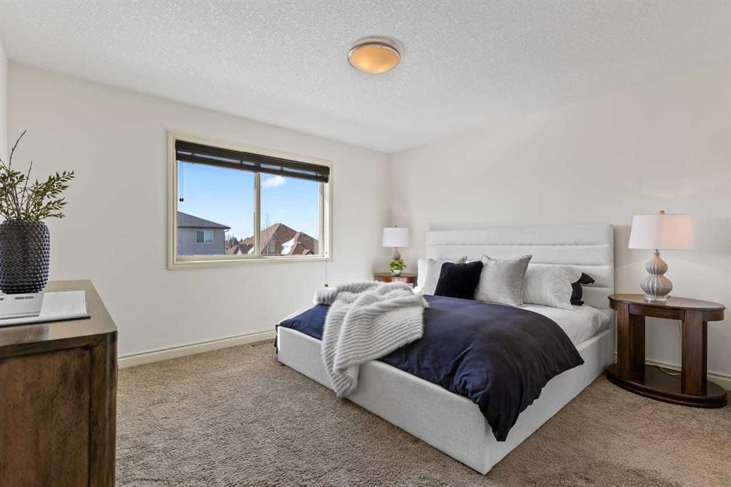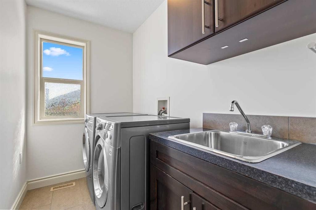 Upstairs, a spacious bonus room provides a comfortable second living area, while three well-sized bedrooms offer room for the whole household. The primary suite includes a walk-in closet and a generous ensuite complete with dual vanities, a soaker tub, and a separate shower. A full secondary bathroom and convenient upper-level laundry with sink and cabinetry complete the level.