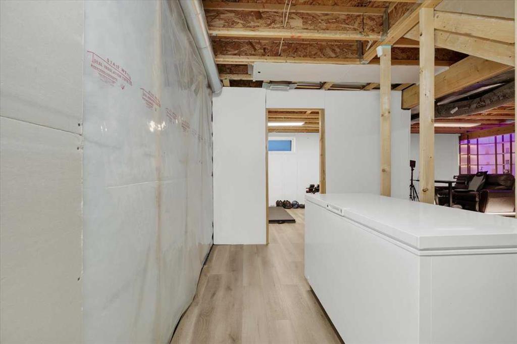 The partially developed basement provides flexible space for a home gym, workshop, or future development.