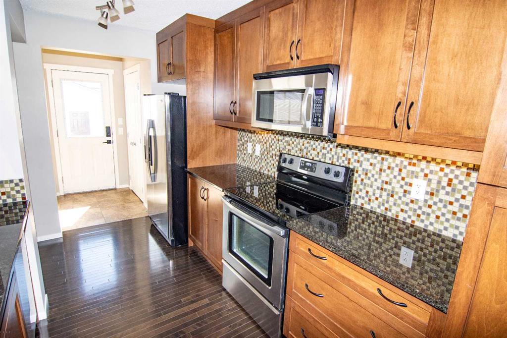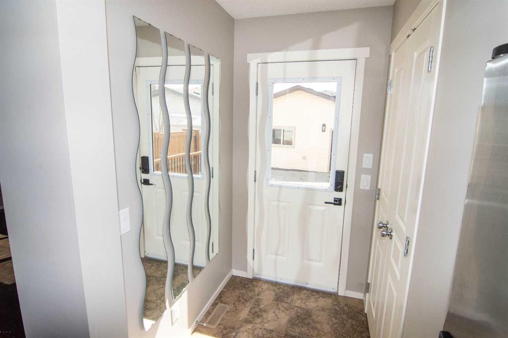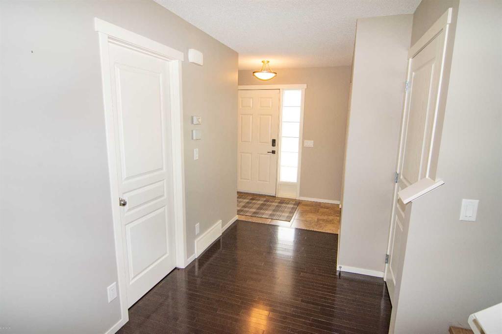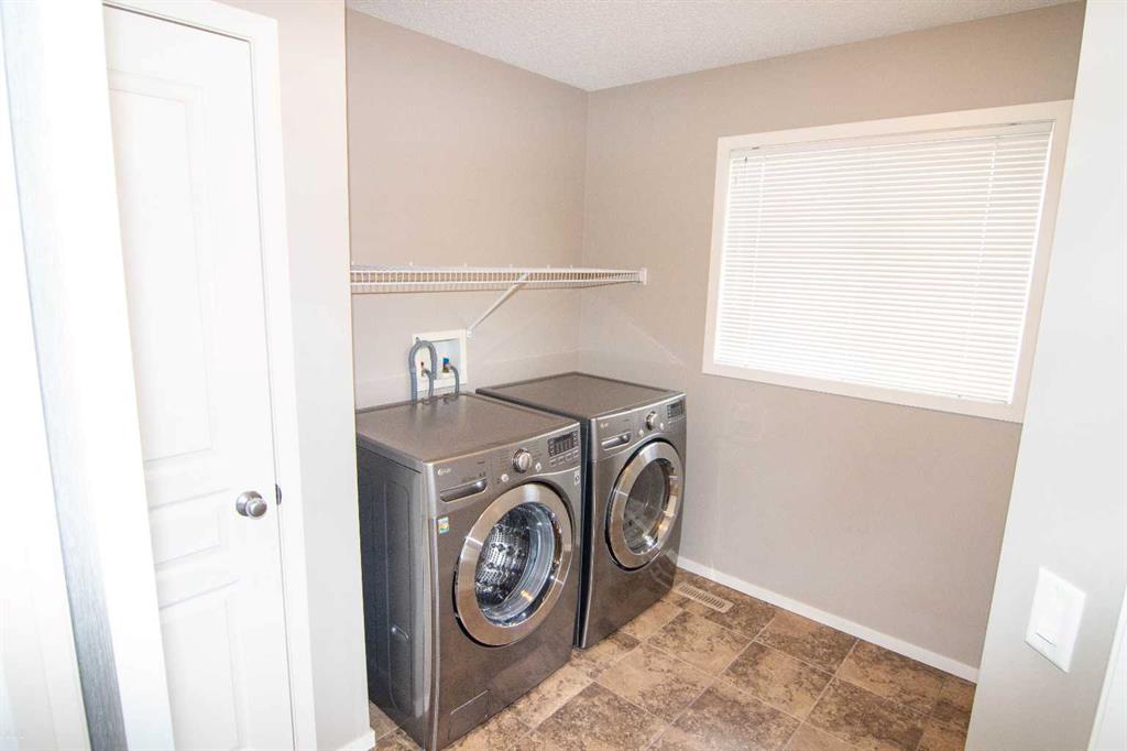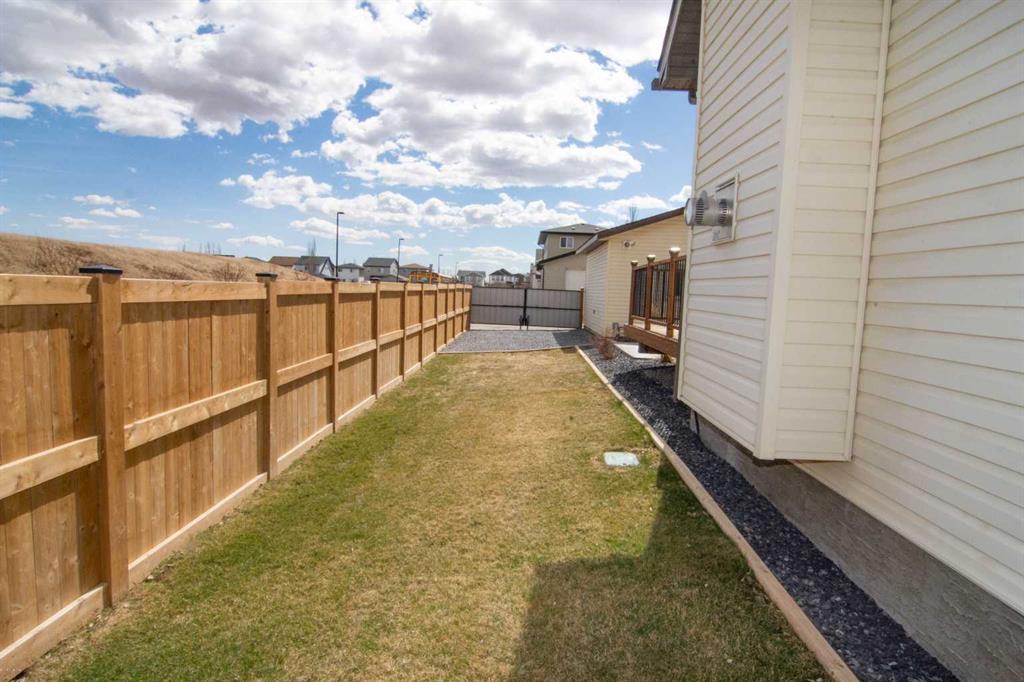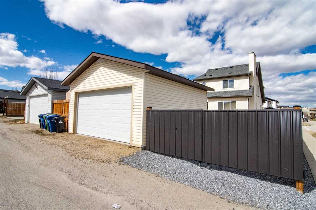 Absolutely immaculate fully finished home in Reunion. Everything is included, all you do is move in! Open kitchen with all appliances, dark wood floors, granite counters, undermount sink, big windows looking out to a beautiful huge south facing yard on a corner lot. Open great room off the kitchen with fireplace and ceiling speakers plus door off the kitchen to a huge new deck. Half bath on this floor as well. All window coverings throughout the home are included. Large tiled front entry plus flex room that could be an office, den or dining room. The upstairs primary suite has a good sized closet plus ensuite bath with soaker tub and stand alone shower. This level includes two more bedrooms a four piece bath and separate laundry area with washer and dryer included. Luxury vinyl flooring throughout the upper level. The lower level is fully developed with a family room, exercise area, 2 more bedrooms with large egress compliant windows and another four piece bathroom. Carpet throughout the lower level. Exterior features a covered front entrance, green space to rear yard with a custom metal gate. The backyard is newly fenced with custom metal gates for your motorhome, trailer, or truck parking. Paved back lane so no mud or dust! Huge new deck off the back door that is the full width of the house with lighting on the railing and a few steps to the stamped concrete patio between the deck and the garage. The deck is south facing and because it is a corner lot it is east facing as well. Six zone "Rainbird" sprinkler system front and back with all the controls in the furnace room. There is a double 20X20 rear garage that is insulated, drywalled and heated. Huge attached 18 ft long storage shed for all your yard equipment etc. The corner lot gives a wide open feeling with lots of additional street parking. Digital locks on front, back and garage entrance door all programed the same so there is no need for keys. Large playground is right across the street , schools within walking distance, shopping, parks and easy access to #2 highway. Great home, Great location! Call your favorite realtor to book your showing today!