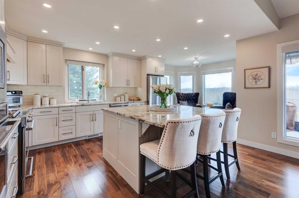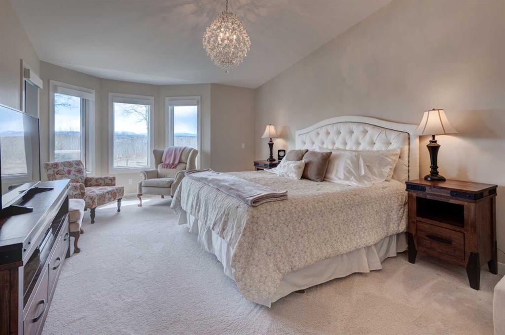 Home Sweet Home! Welcome to your stunning, recently renovated VILLA with MAGNIFICENT MOUNTAIN & VALLEY VIEWS from both levels of this beautiful home! This large "Augusta Plan Model" WALK OUT BUNGALOW has no neighbours behind, backs into a farmers field. Out back there is both a west facing upper deck and covered patio for you to enjoy you sunsets over the mountains. Out front there is a cozy interlocking brick patio to enjoy coffee in the morning sun. It is common to see wild life in the area before your tee time on the golf course. The home has recently been extensively updated and renovated throughout. The $250,000 update includes new kitchen, baths, flooring, cabinets, appliances, fixtures, window coverings, exterior stucco paint and more. The Main level consists of a formal living and dining area that can accommodate a large dining table and hutch, an open concept kitchen/nook/family room that is ideal for entertaining, large foyer, master retreat with 5 piece ensuite, large sitting area and huge walk in closet, full bath, Den, second bedroom and laundry room. The lower Walkout level consists of a very large family room with gas fire place, patio doors to lower covered patio, two larger bedrooms, a 4 pc bathroom and a huge undeveloped area currently used for storage and utilities but with room to build another bedroom/den/gym. The attached double garage has an area for your golf cart as well as room to store bikes or have a work bench. Features include beautiful flooring, oversized windows, upgraded appliances, upgraded lighting, quartz counters, soaring vaulted ceilings, with stained glass panels, spiral stairs, architecturally landscaped yard and much more! This is one of those communities that will make you will feel at home. Don’t miss your opportunity to purchase this stunning home.