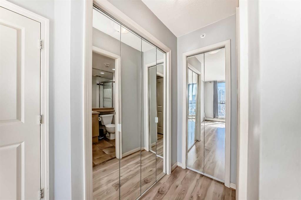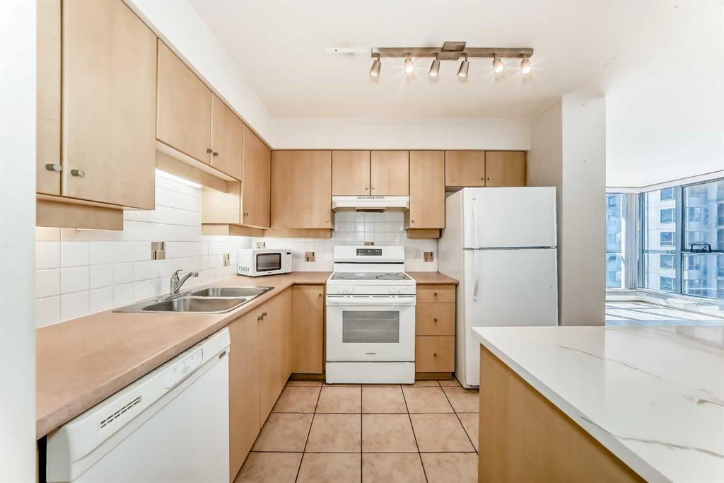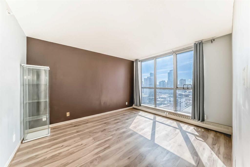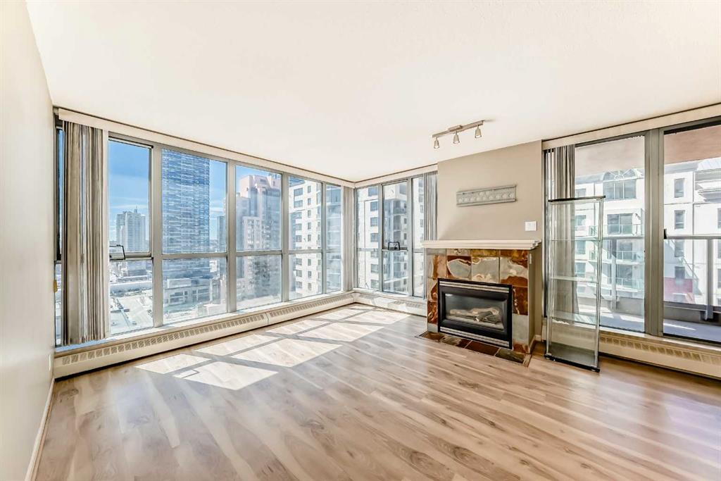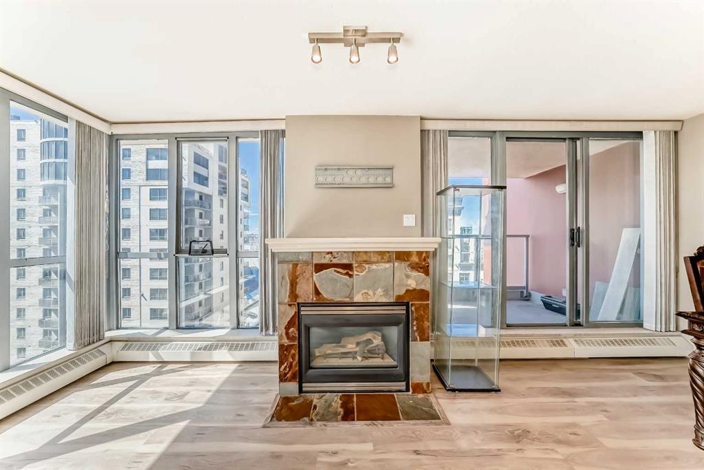 Welcome to the Seventeen Floor Corner Unit Facing South & West in the Wonderful Axxis Building. Bright Living room with Gas Fireplace. Spacious Dining Room leads out to the West Facing Balcony. Very Functional Kitchen has a Quartz Island. In-Suite Storage and Stacked Washer/Dryer. Tile in Entrance, Kitchen and the Main Bathroom & Ensuite Bathroom. Laminate Flooring in the Living Room, Dining Room, Hallways and the 2 Generous Sized Bedrooms. No Carpet in this Apartment!!! Building has a great Fitness Centre, a Party Room with Full Kitchen for Larger Gatherings, Gated Visitor Parking, Bike Storage and a Fantastic Outdoor Area on Two Levels. This Home is close to the River, Bike & Walking Pathways, C-Train, Shopping and Dining... See All the Terrific Things that West Downtown has to Offer!!!