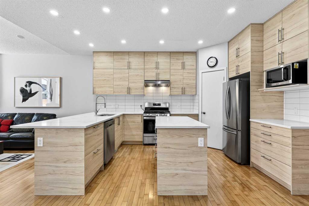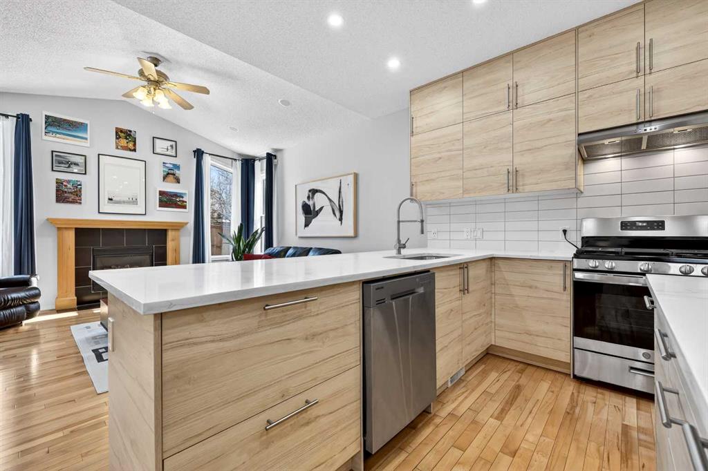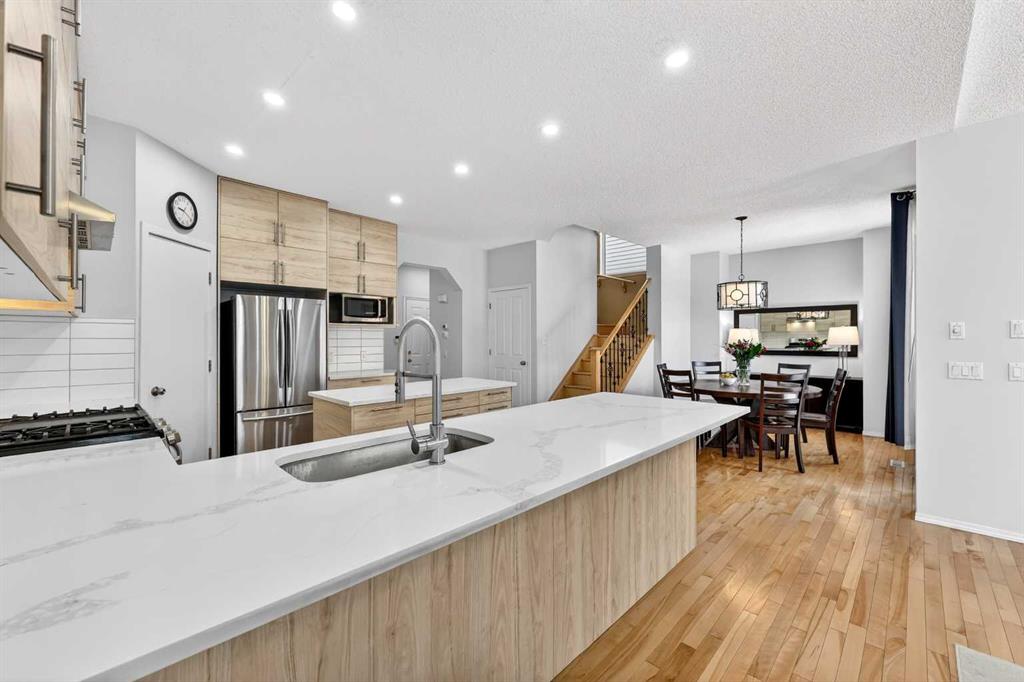 **JOIN US AT OUR OPEN HOUSE THIS SATURDAY, MAY 2 FROM 2-4PM!** Welcome to this beautifully upgraded two-story home in the highly sought-after community of Citadel. This is the first time this property has ever been offered for sale. From the moment you step inside, you’re greeted by a bright front office—perfect for working from home—alongside a convenient 2-piece powder room and access to the attached double car garage. The main floor is defined by soaring 9-foot ceilings, rich maple hardwood flooring, and an open, airy layout designed for entertaining. At the heart of the home is a stunning, fully renovated kitchen (2021), featuring floor-to-ceiling cabinetry, sleek quartz countertops, a gas range, and a spacious pantry. The adjacent living room impresses with vaulted ceilings, a cozy gas fireplace, and built-in surround sound, creating a warm yet sophisticated space to gather. Upstairs, you’ll find durable laminate plank flooring throughout, along with a convenient upper-level laundry room (washer and dryer from 2024). The primary bedroom offers a walk-in closet with attic access and a well-appointed ensuite complete with a deep soaker tub, separate shower, and marble countertops. A generously sized second bedroom also features its own walk-in closet, while a full 4-piece bathroom serves the upper level. The third bedroom features a full closet and can easily function as a home office, guest room or bedroom. The fully developed basement adds valuable living space, a 4-piece bathroom, a newer upright freezer, built-in speakers—ideal for guests, extended family, or entertaining. Additional upgrades include all new triple-pane windows (2024) and updated attic insulation for improved comfort and energy efficiency. Originally a Beattie show home, this property showcases quality craftsmanship and thoughtful upgrades throughout. Walking distance to St Brigid School (down the street, 6 mins walk), Citadel Park School (15 mins walk), Citadel Way Park, and minutes to shopping, restaurants (Costco, Beacon Hill Centre, Crowfoot Centre, Royal Oak Centre) and Stoney Trail. Call your favourite realtor today to schedule a private showing.